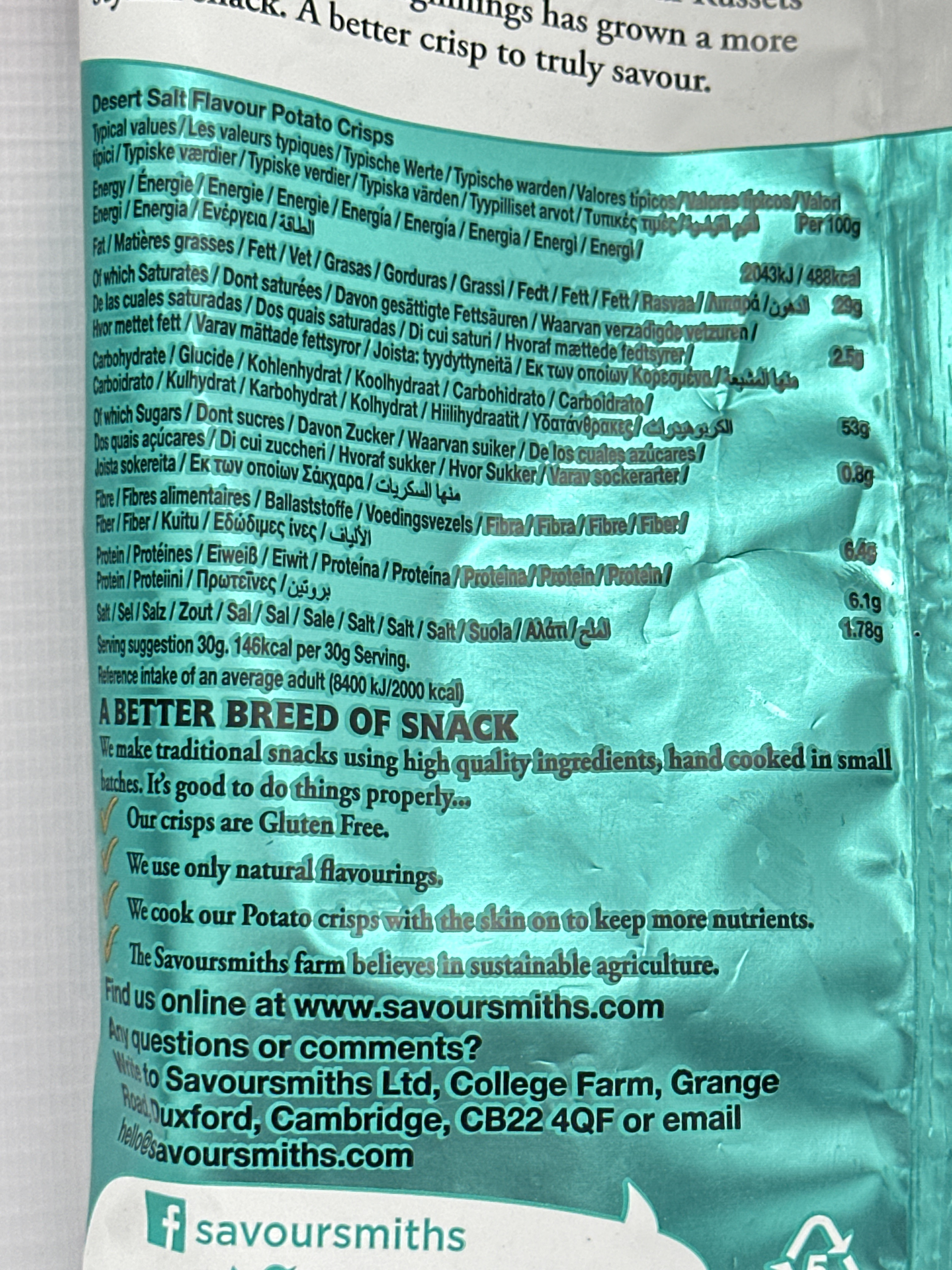 Savoursmiths Desert Salt Luxury English Potato Crisps 150g