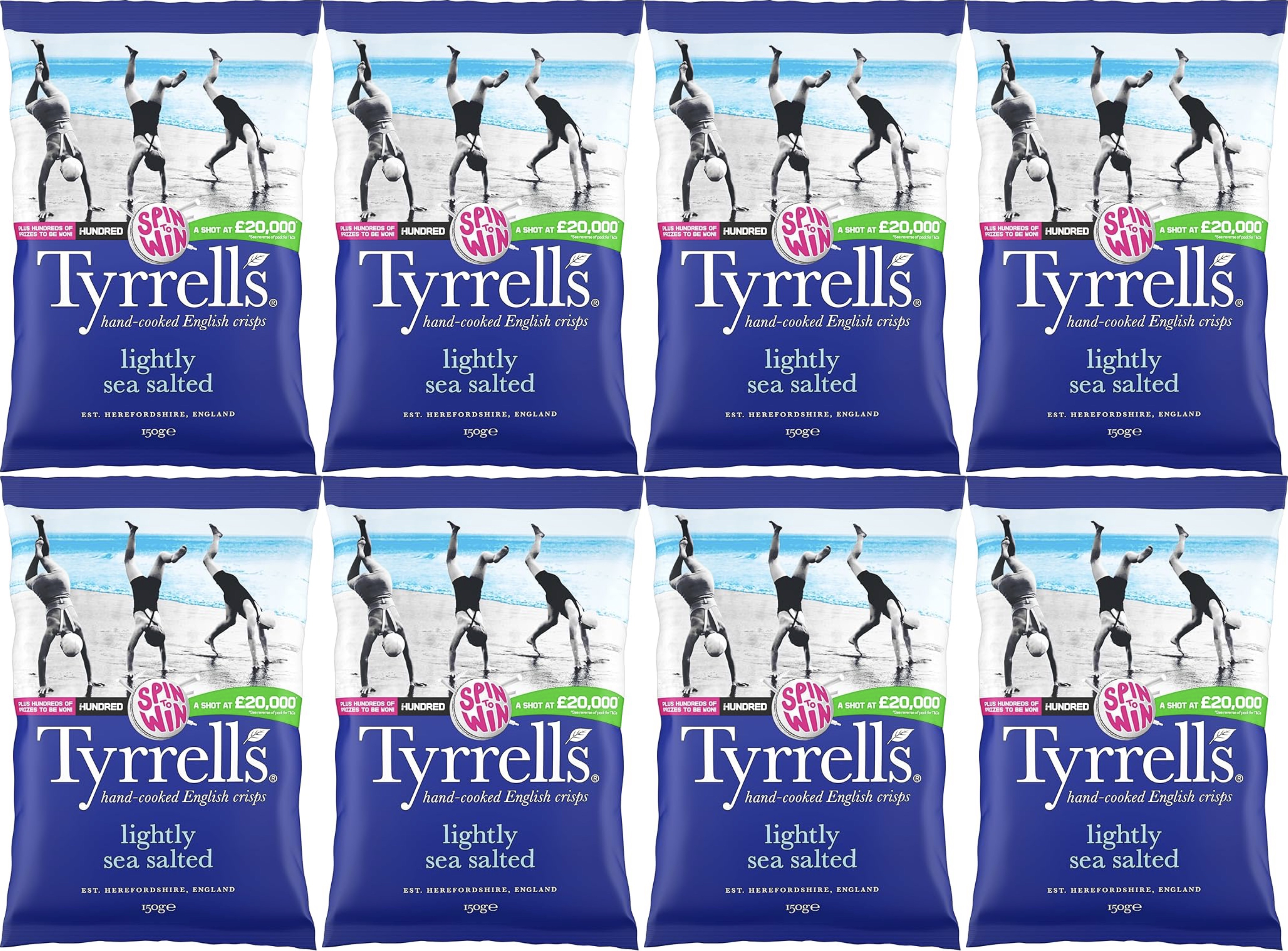 Tyrrells Lightly Sea Salted Crisps 8 x 150g Sharing Bags Hand Cooked