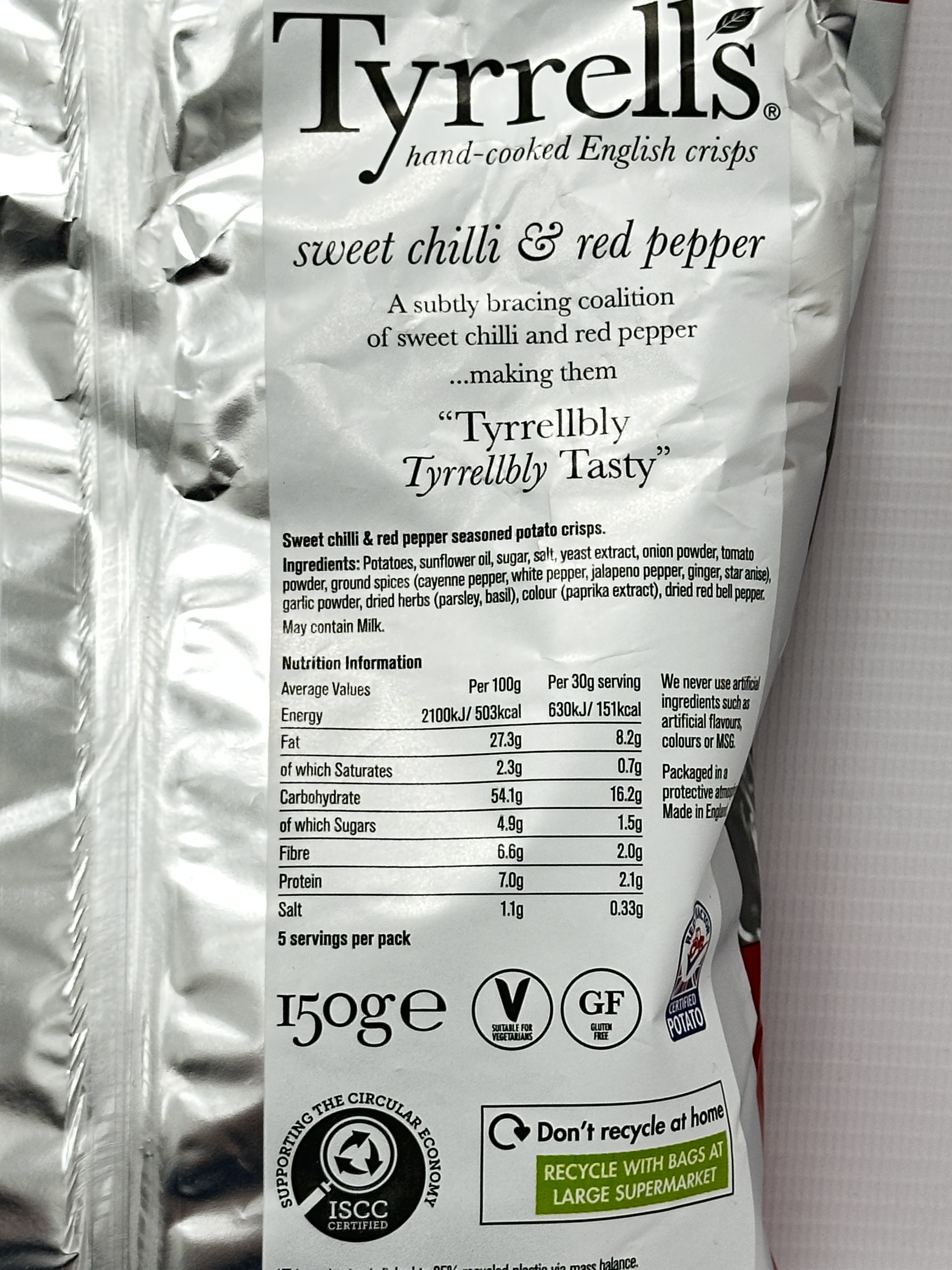 Tyrrells Sweet Chilli & Red Pepper Sharing Crisps 150 g