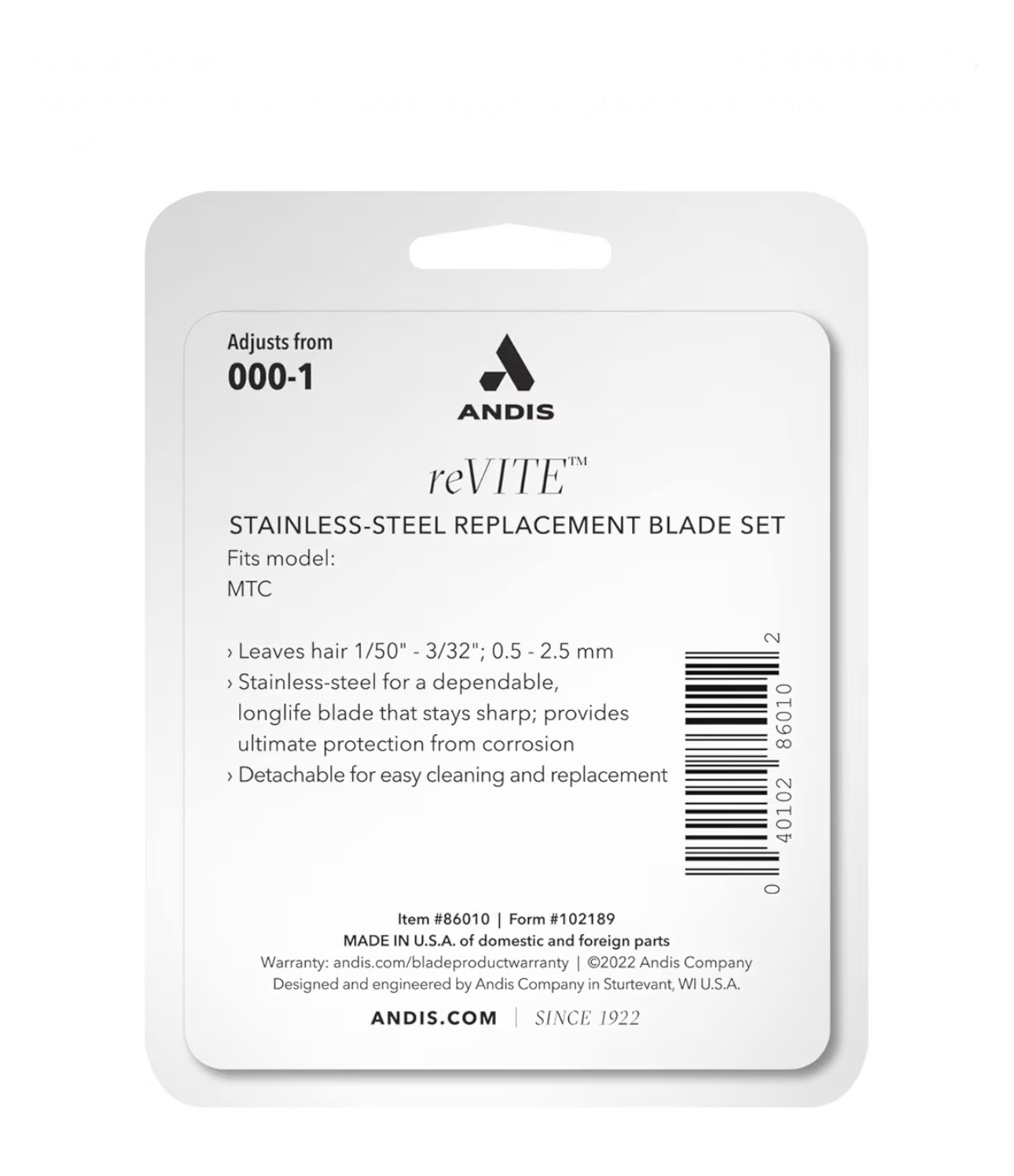 Andis 86010 reVITE Taper Clipper Replacement Stainless Steel Blade