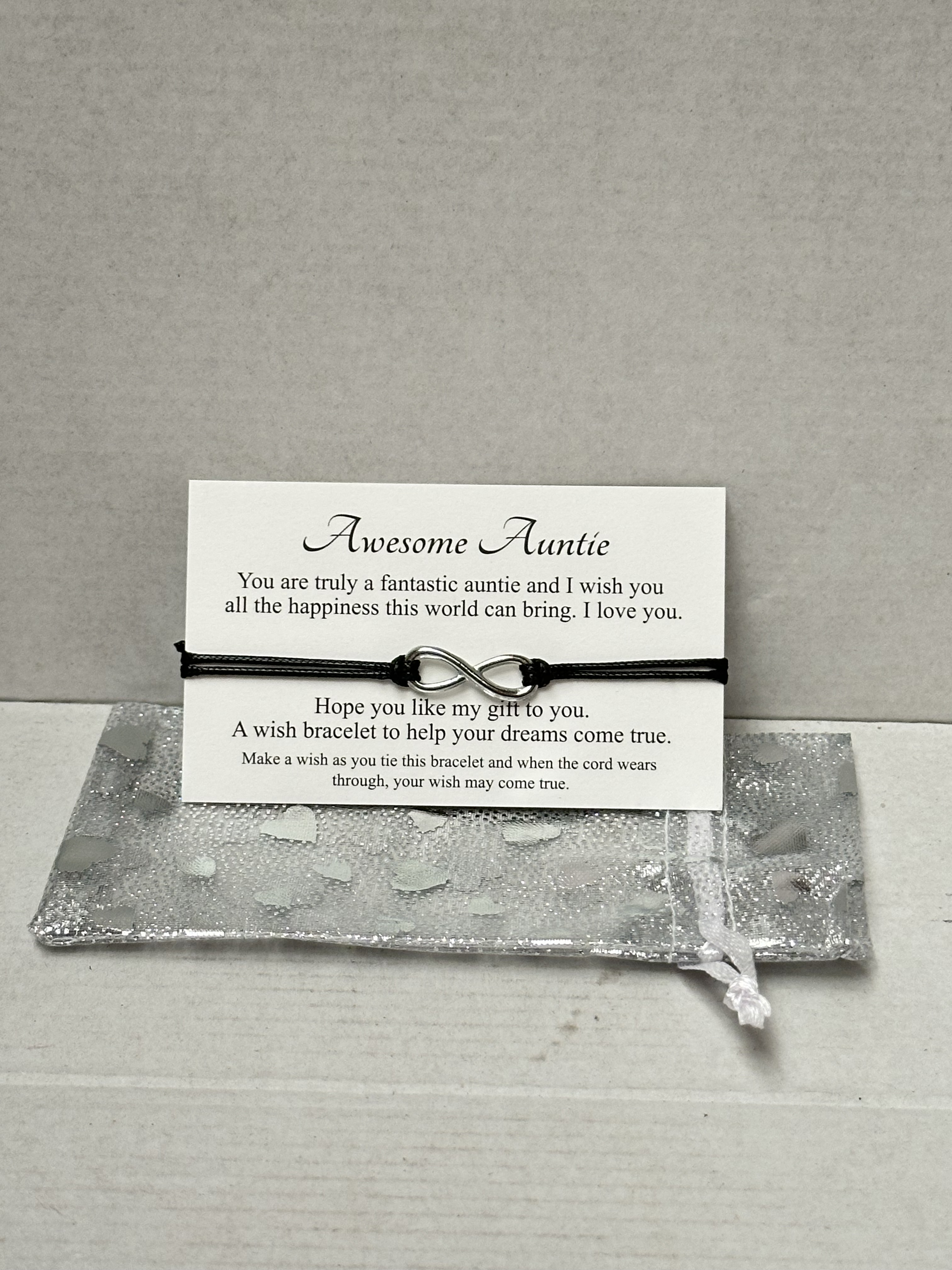 Infinity Wish String Bracelet – Auntie Gift for Christmas or Birthday – Thoughtful Jewellery Keepsake with Message Card