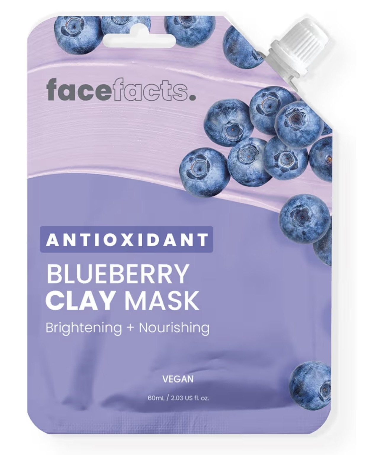 Face Facts Antioxidant Blueberry Kaolin Clay Face Mask Infused with antioxidant-rich superfood blueberry fruit extract Brightens and nourishes complexion Vegan 60ml