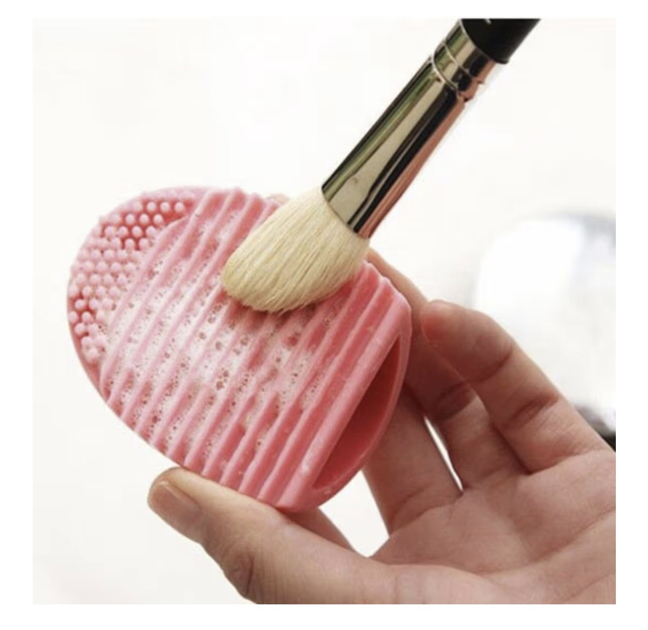 Silicone Makeup Brush Cleaner Pink Egg Shape Scrubber for Brushes and Beauty Sponges Reusable Cleaning Tool