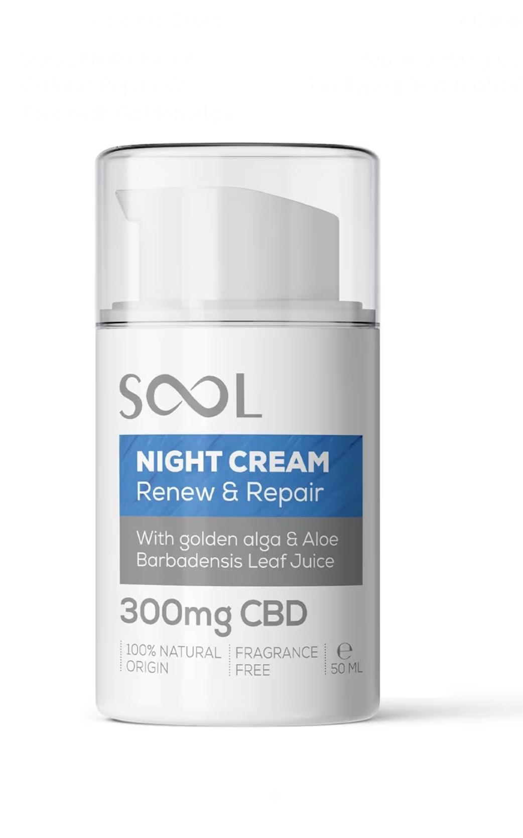 SOOL Night Facial Cream Renew & Repair 300mg CBD 50ml Cellular Repair Cream for All Skin Type