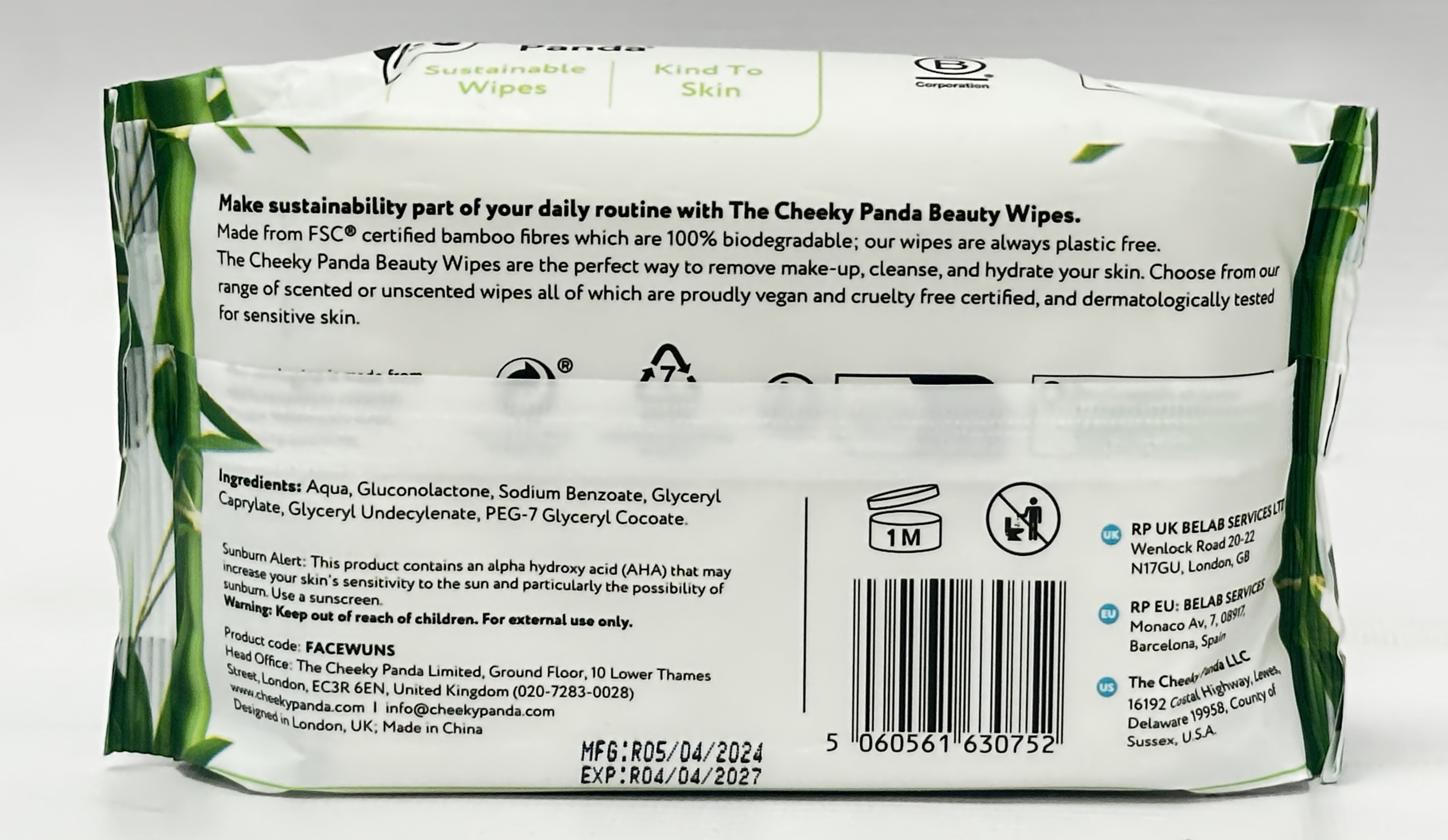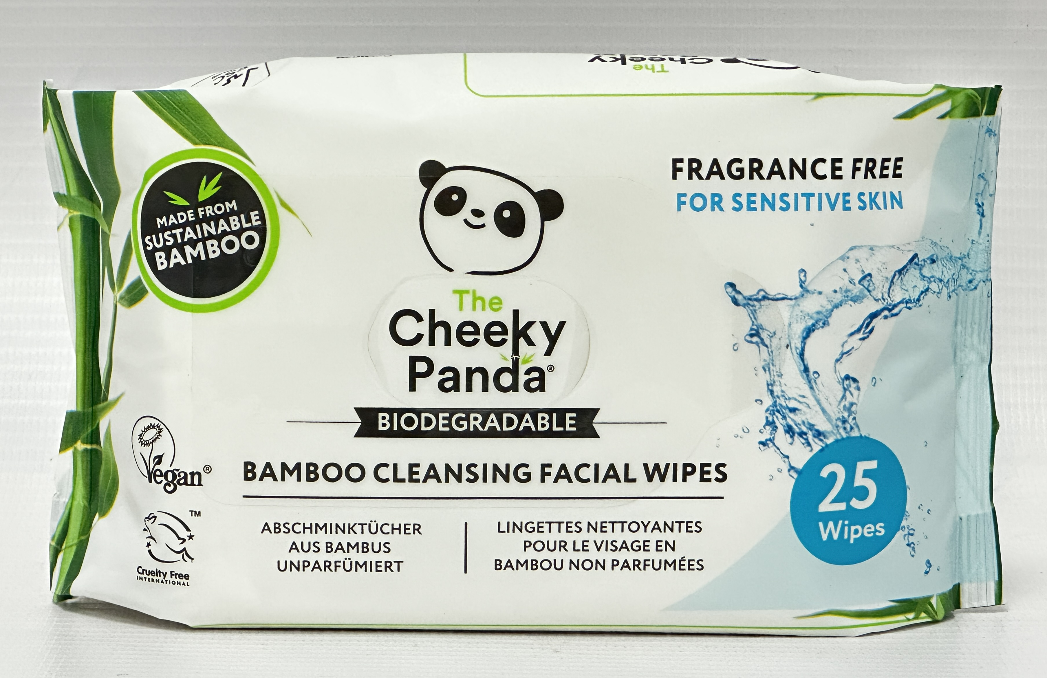 The Cheeky Panda Bamboo Cleansing Facial Wipes are an unscented 25 wipe pack designed for everyday face cleansing and make-up removal. Made from sustainable bamboo and labelled biodegradable, this handy pack is ideal for bathroom cupboards, travel bags and daily skincare routines. [oai_citation:0‡eBay UK](https://www.ebay.co.uk/itm/405870926062?utm_source=chatgpt.com)