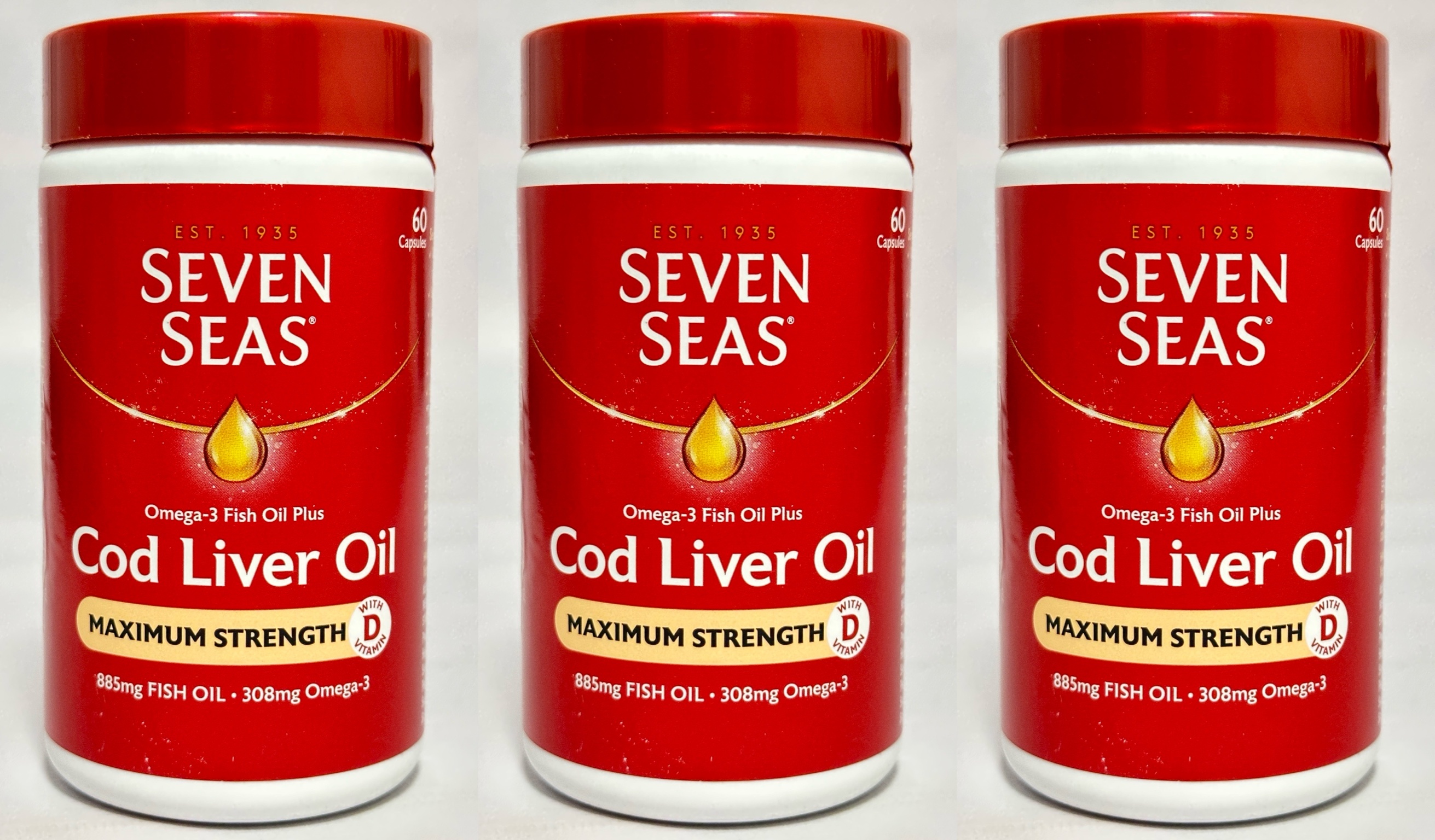 Seven Seas Cod Liver Oil Maximum Strength Omega-3 Capsules | 60 Capsules | Pack of 3 (180 Capsules)