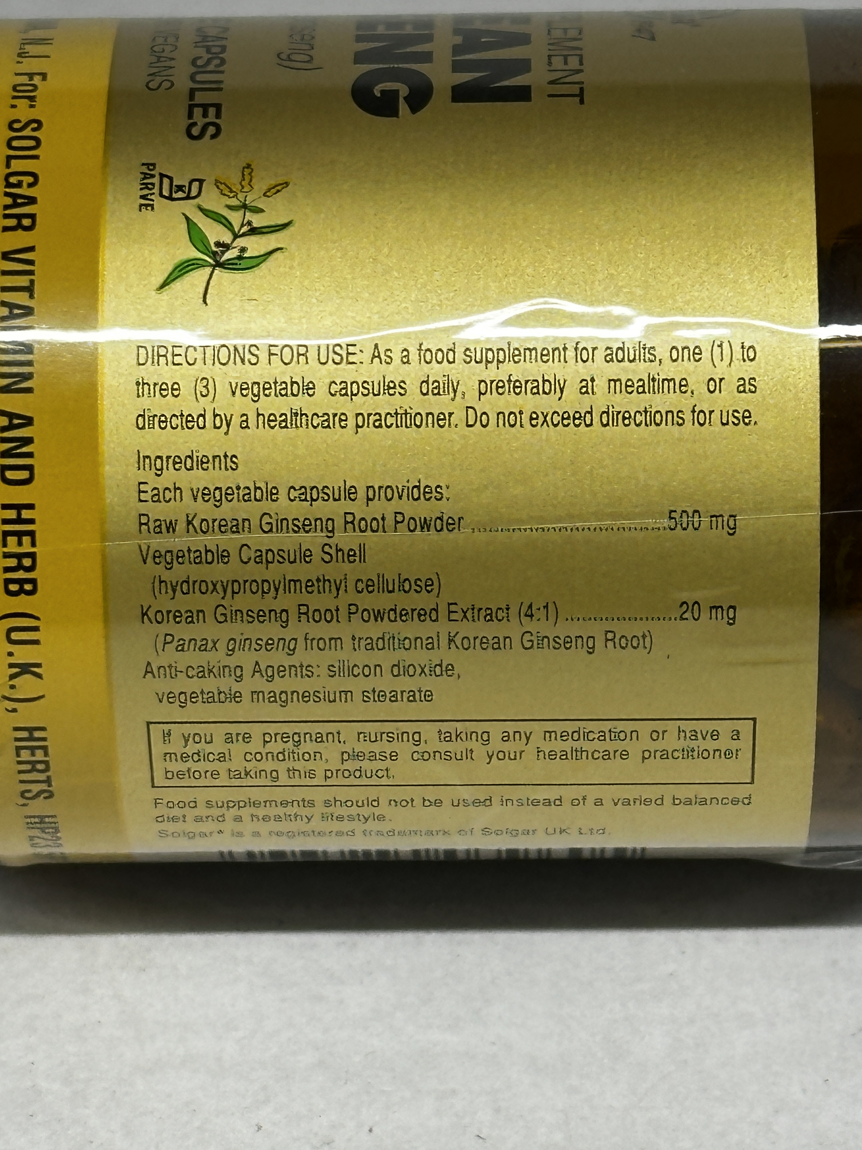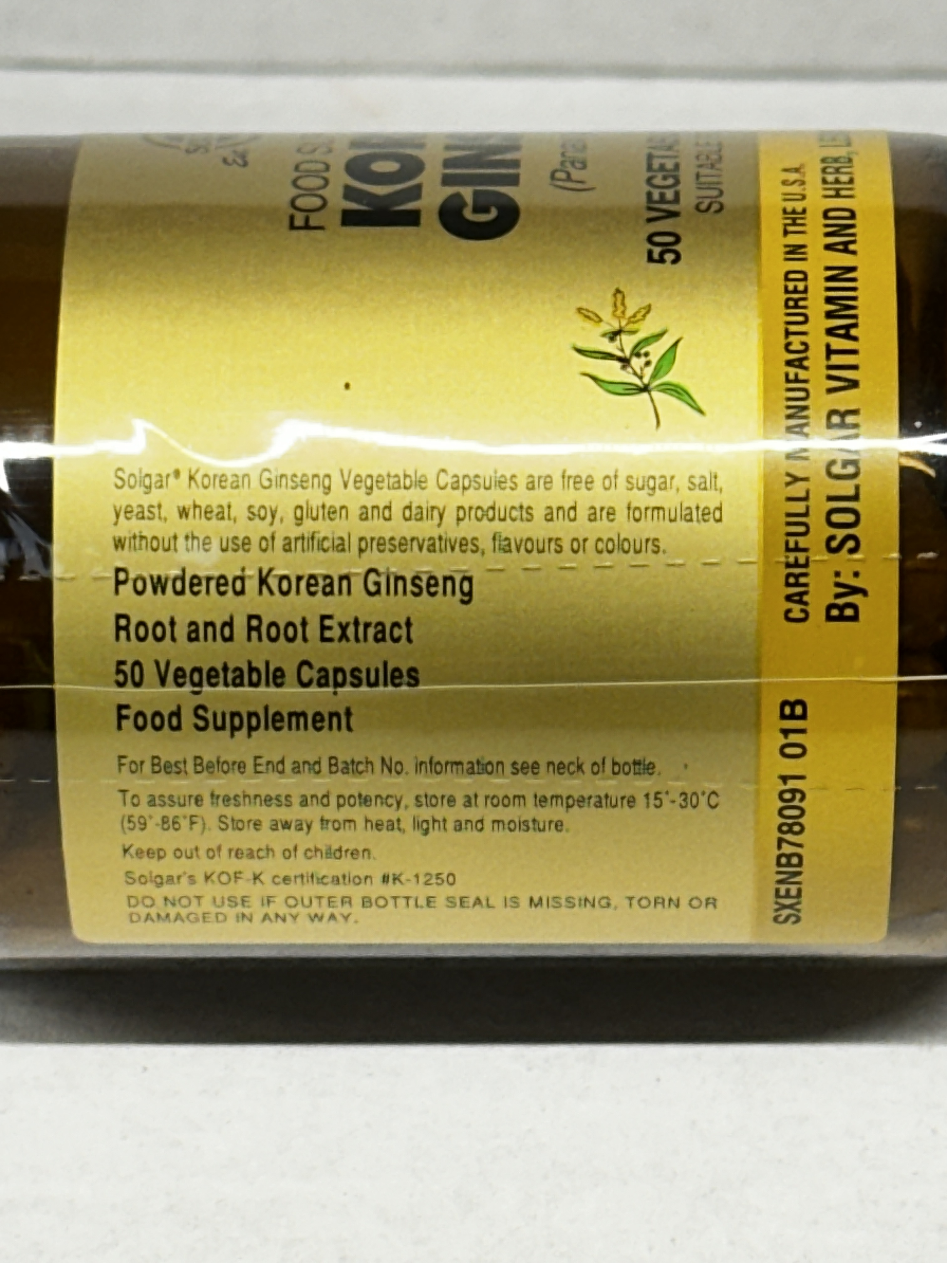 • Pack of 50 Solgar Korean Ginseng vegetable capsules