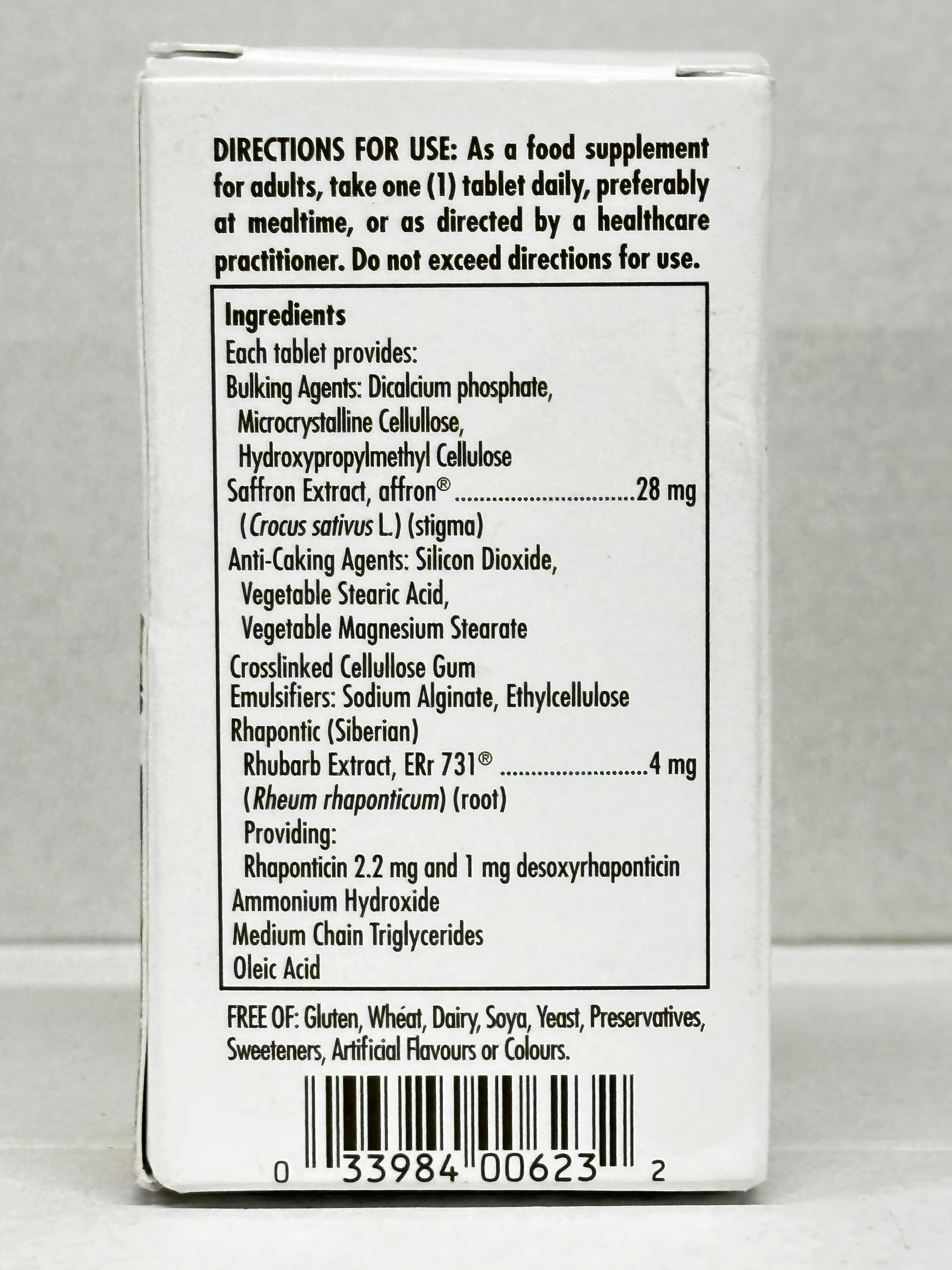 • With saffron extract and Siberian rhubarb extract