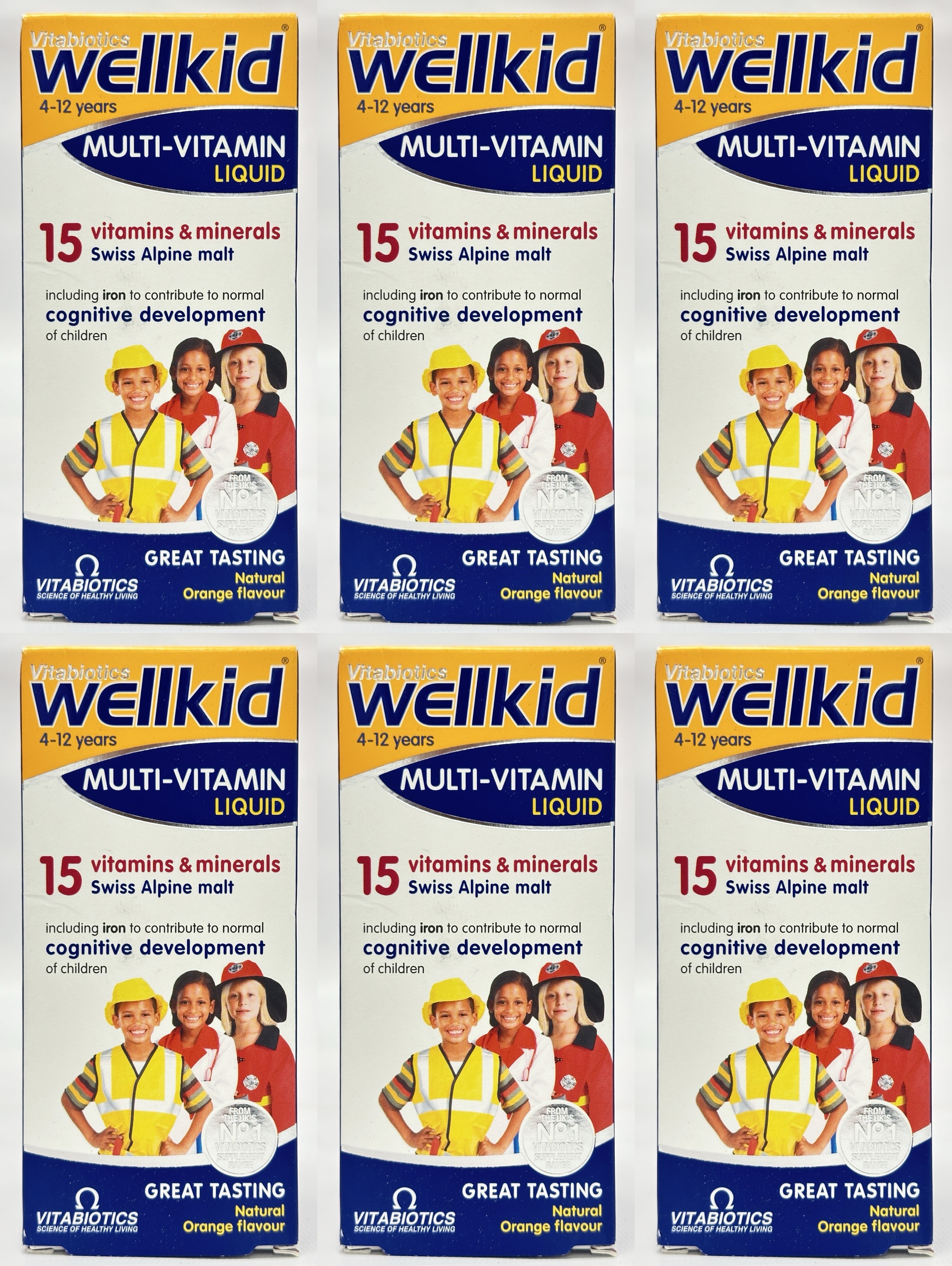 Vitabiotics Wellkid Multivitamin Liquid for Children 4–12 Years – Orange Flavour – 150ml (Pack of 6)