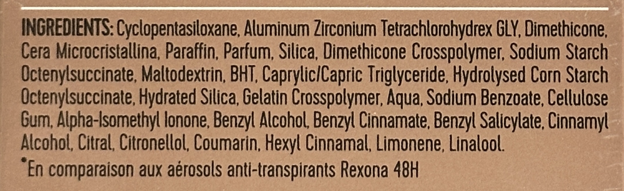*Compared to Rexona 48h aerosol anti-perspirants.