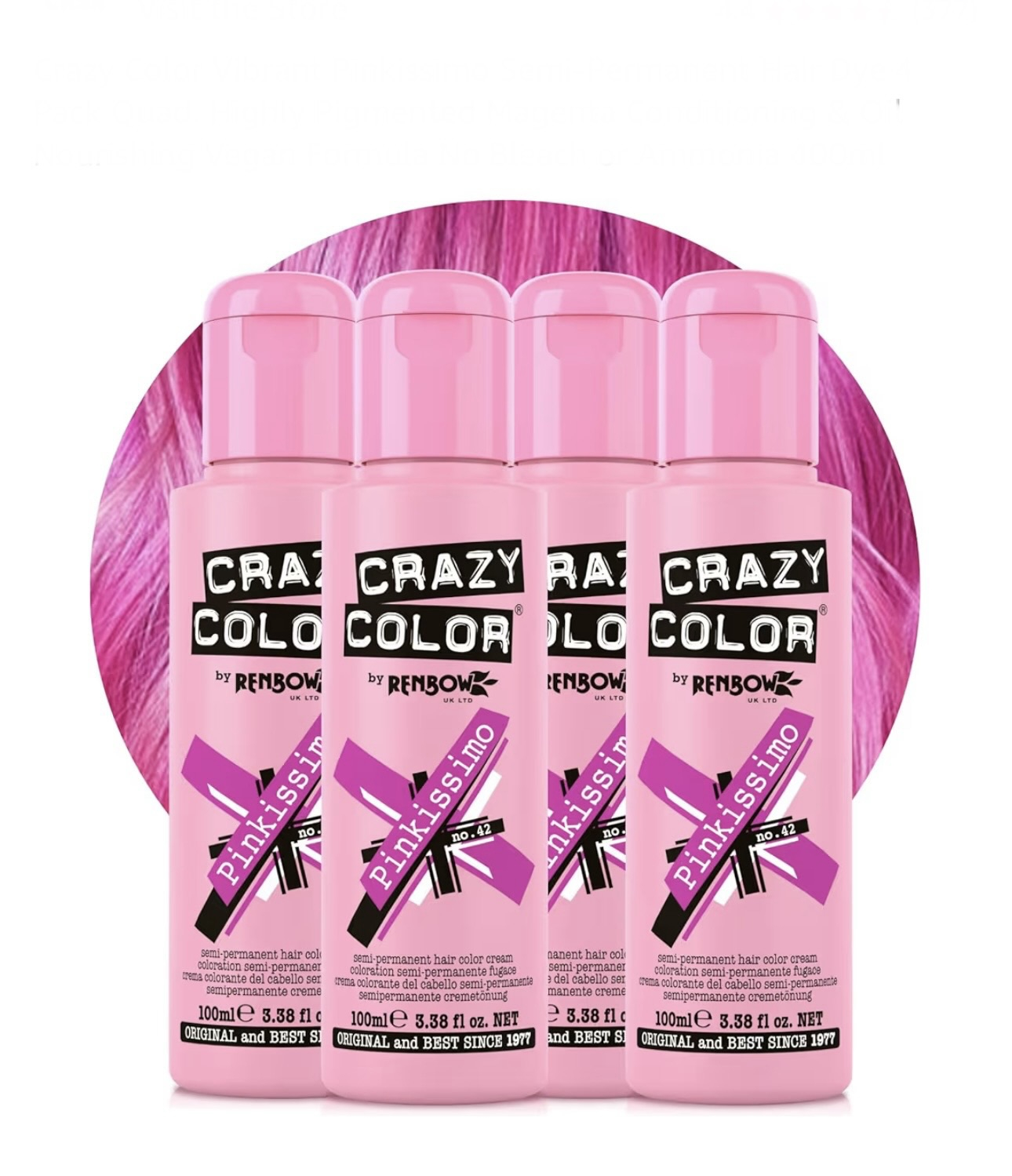 Crazy Color Vibrant Pinkissimo Semi-Permanent Hair Dye 4 X 100ml