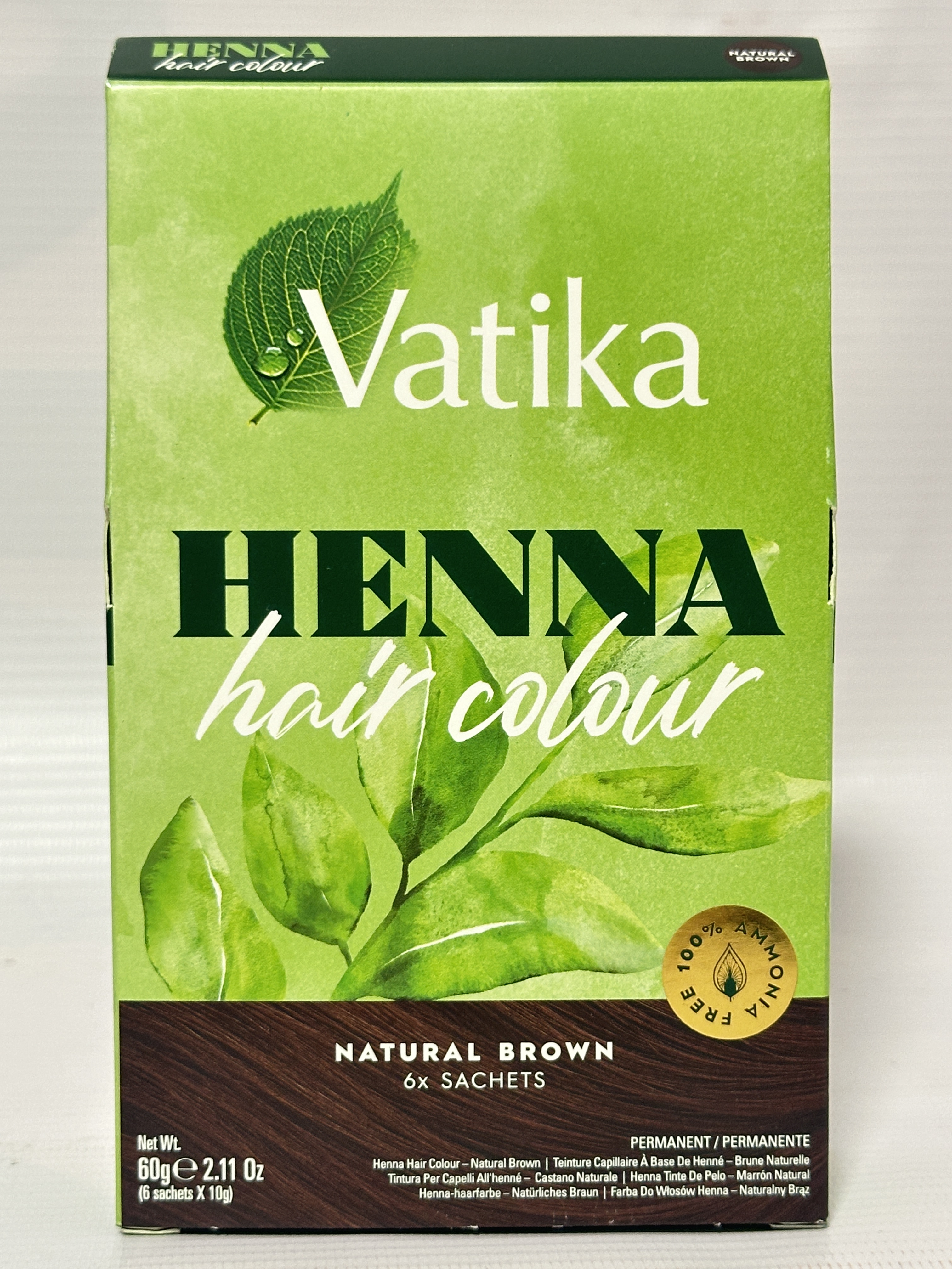 Vatika Henna Hair Colour Natural Brown 6 x 10g | 100% Ammonia Free | Herbal Hair Dye | Long-Lasting Shine & Grey Coverage