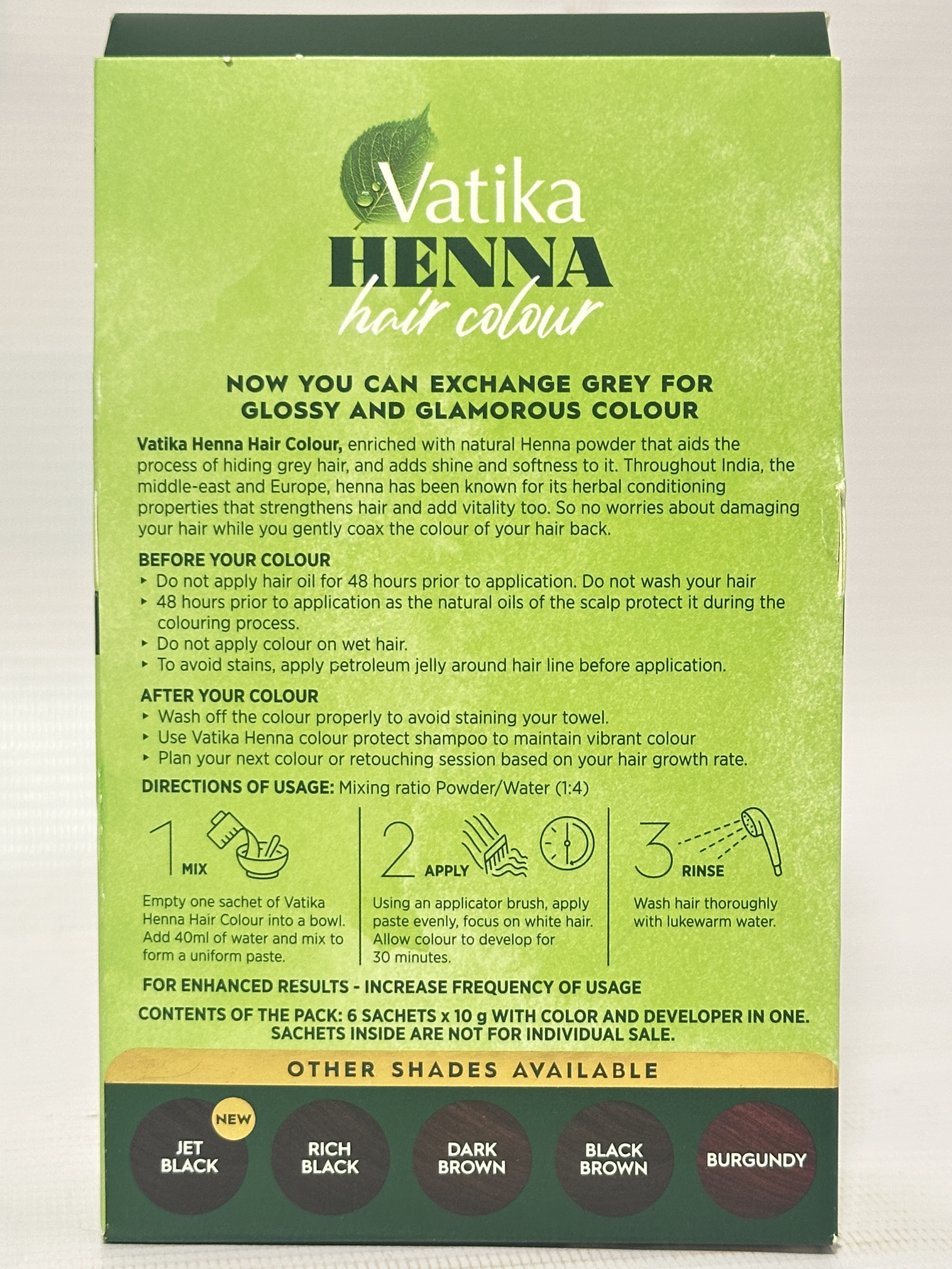 Achieve beautiful, glossy hair with Vatika Henna Hair Colour – Natural Brown. Enriched with natural Henna powder and herbal conditioners, this ammonia-free hair colour gently covers greys while nourishing and strengthening each strand. Known for its rich pigmentation and softening properties, Henna adds shine and vitality, leaving your hair looking radiant and healthy.