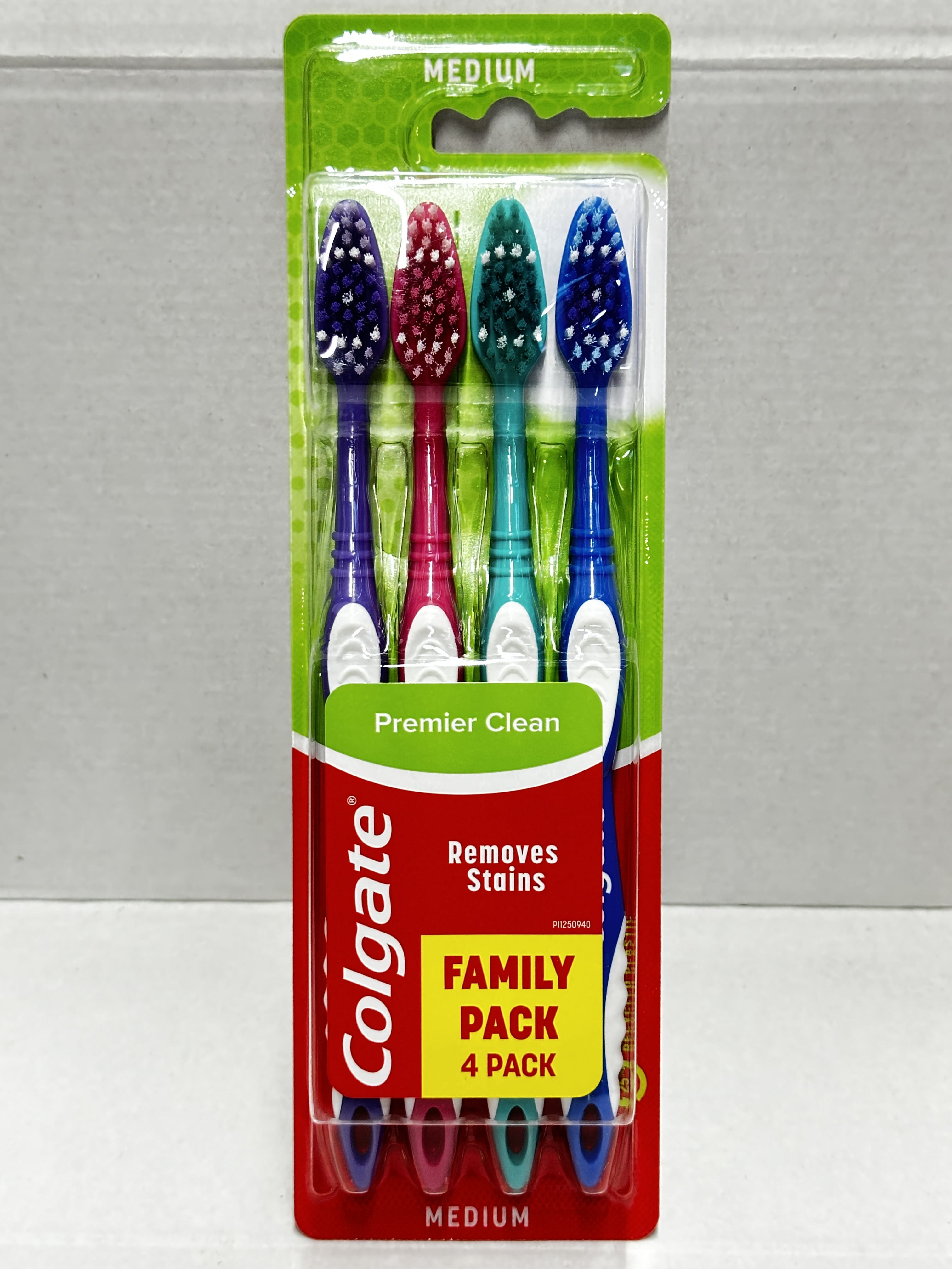 Colgate Premier Clean Medium Toothbrushes 4 Pack Family Pack