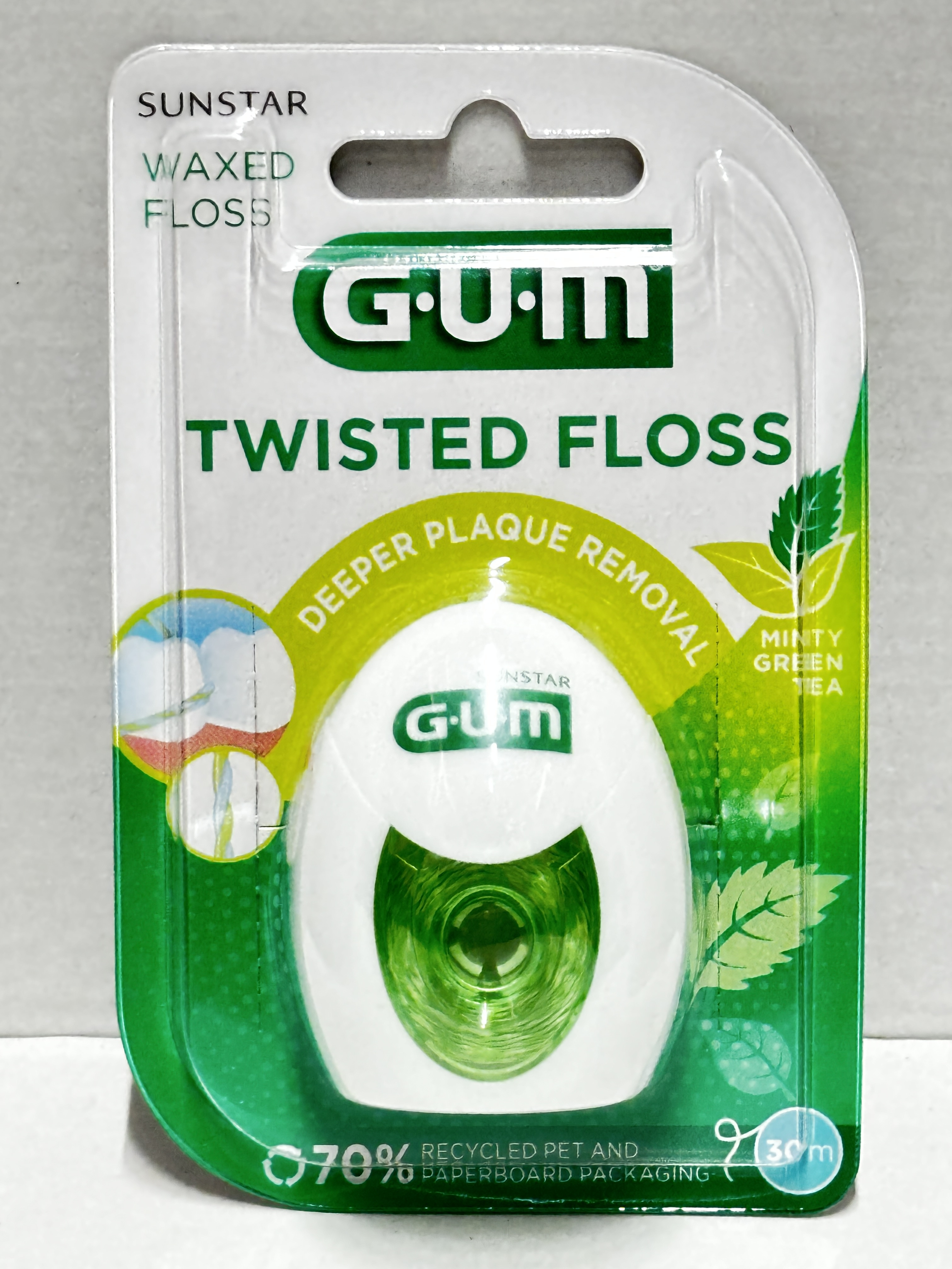 GUM Twisted Floss Minty Green Tea 30m Waxed Dental Floss