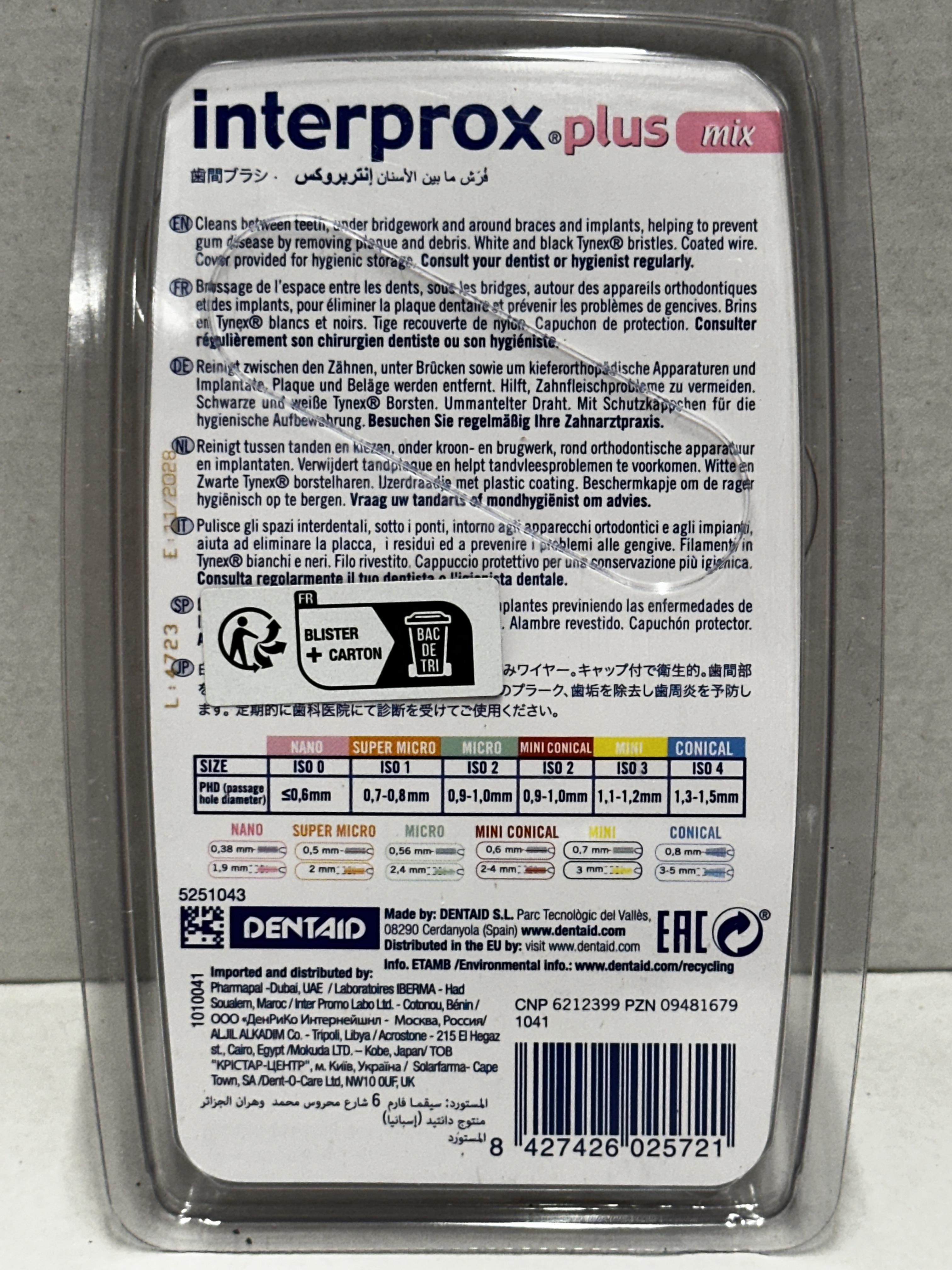 A mixed 6 pack is a practical way to keep different interdental brush sizes on hand without buying several separate packs. It is especially useful for people who need different sizes across the mouth.