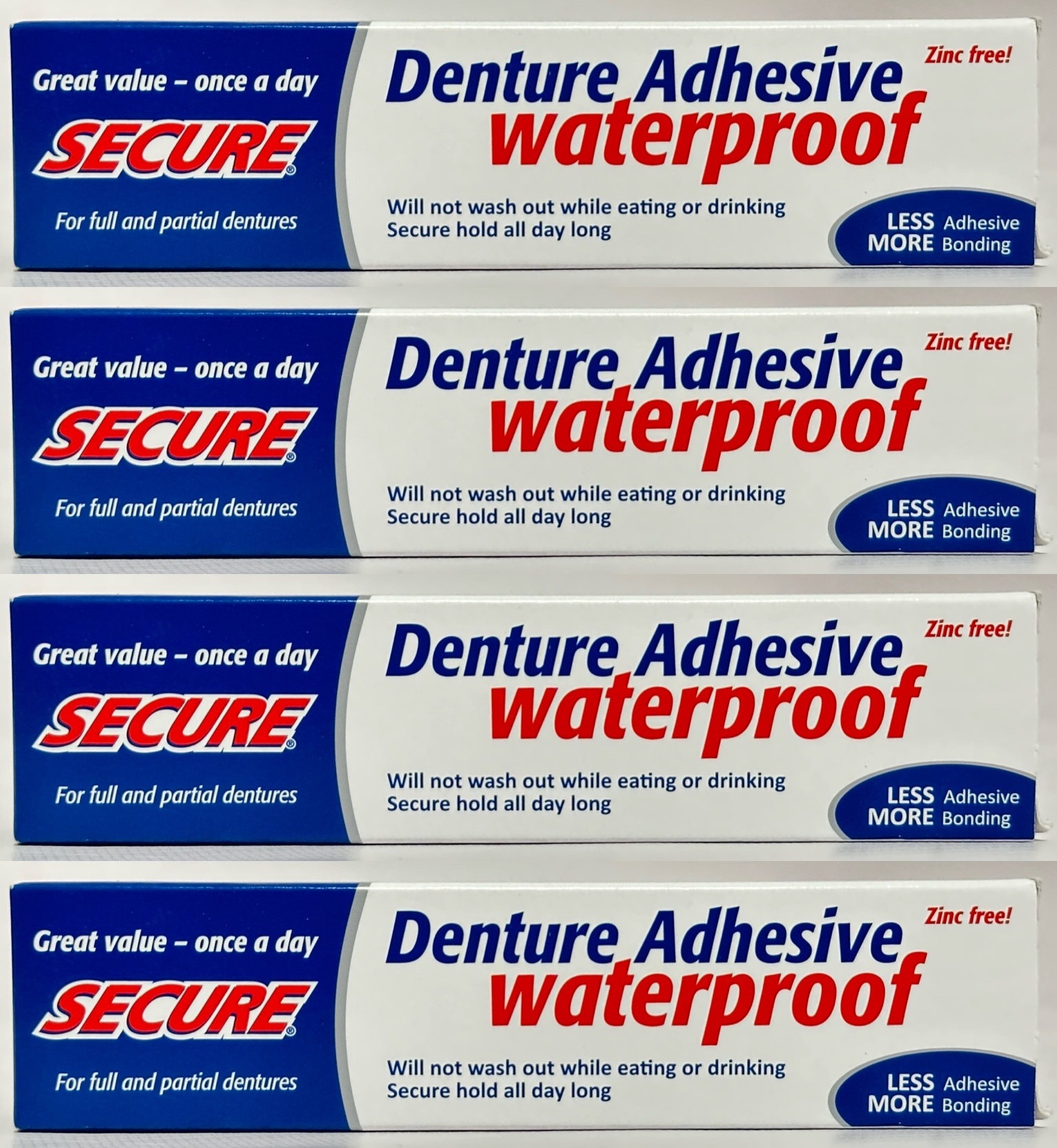 Secure Denture Adhesive Waterproof – Zinc Free – 4 x 40g