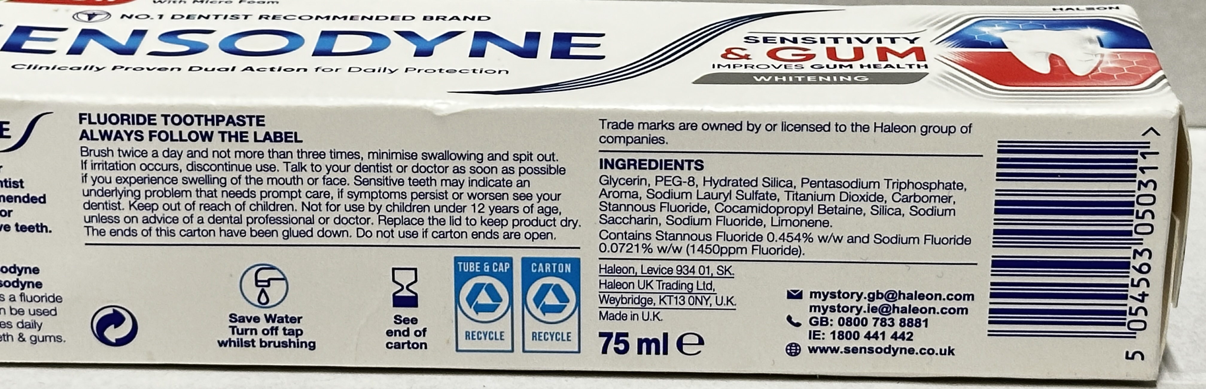 - 75ml Sensodyne Sensitivity & Gum Whitening toothpaste