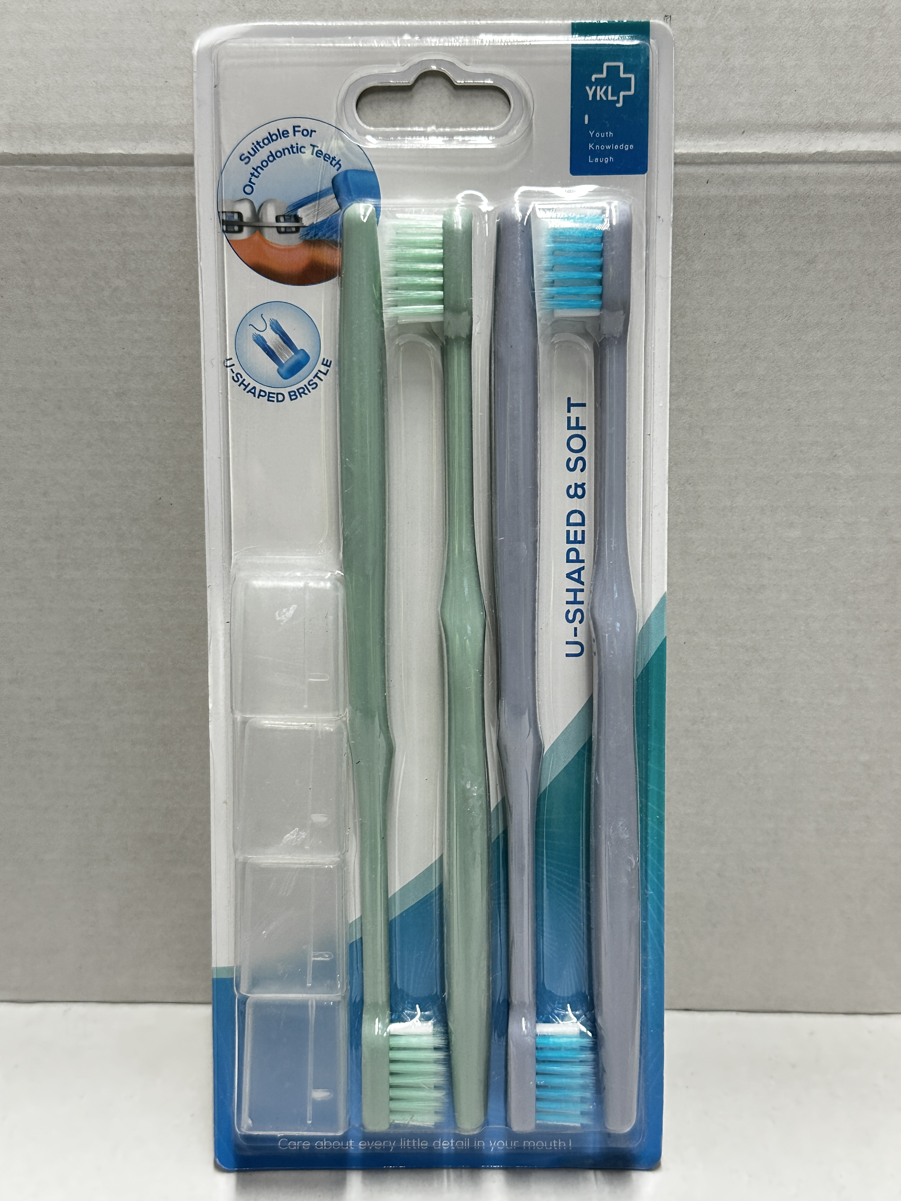 Keep daily oral care simple during orthodontic treatment with this YKL U-Shaped Orthodontic Toothbrush Set. This 4 pack is designed for orthodontic teeth and features a U-shaped bristle pattern made to help clean around wires and brackets.