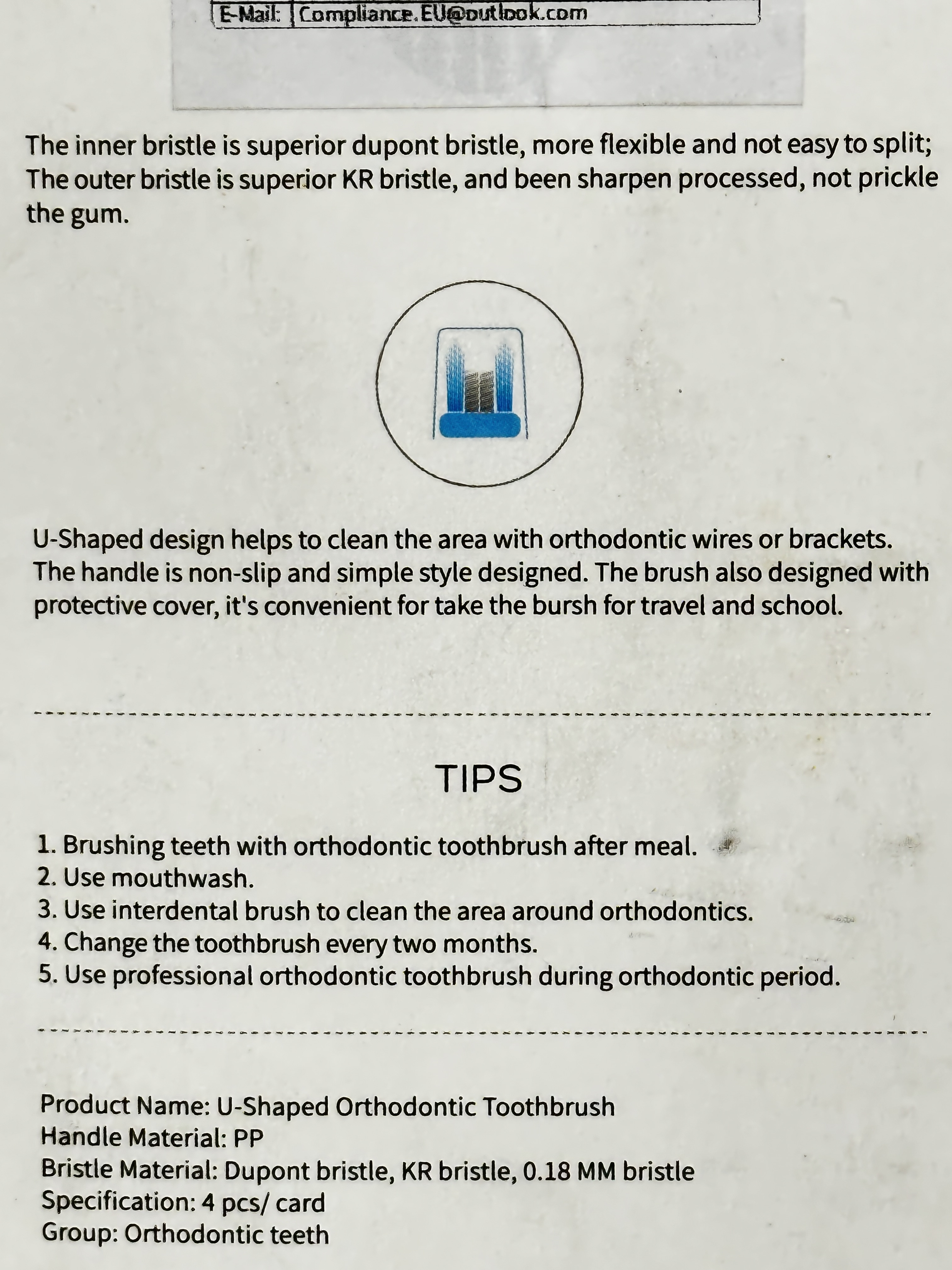 - 4 orthodontic toothbrushes per pack