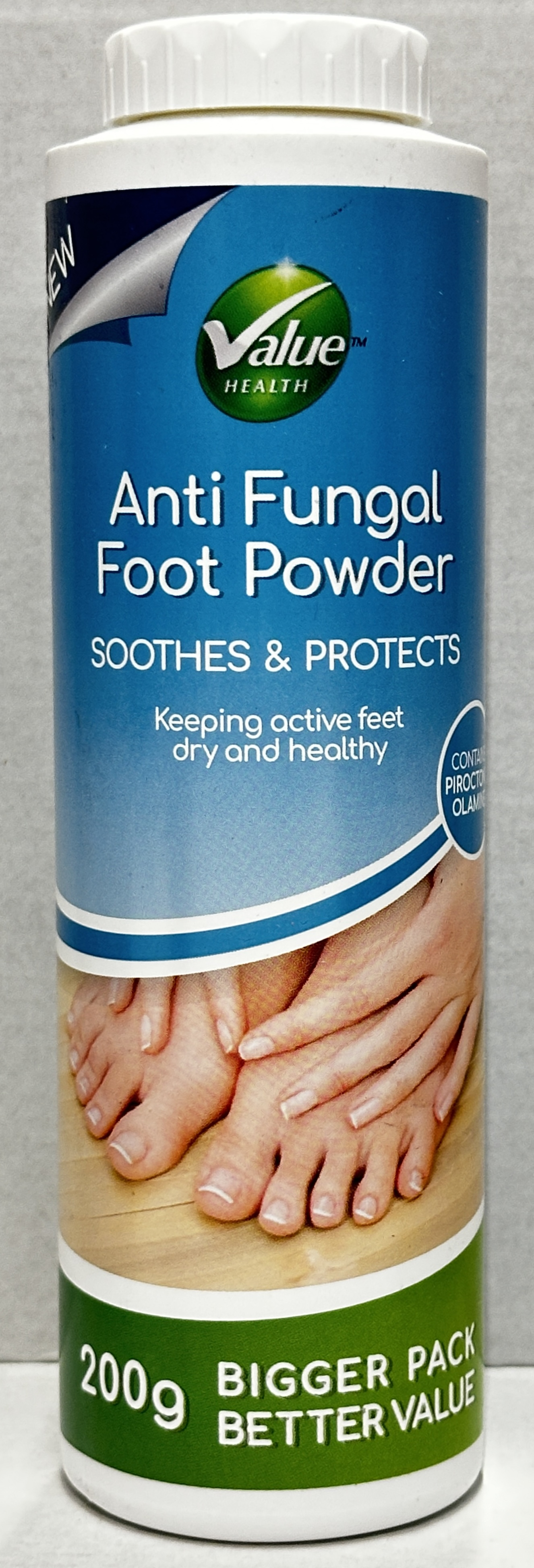 Value Health Anti Fungal Foot Powder is a 200g footcare powder designed to help keep feet dry and healthy. The bottle highlights “Soothes & Protects” and this larger 200g pack offers a practical everyday format for regular footcare use.