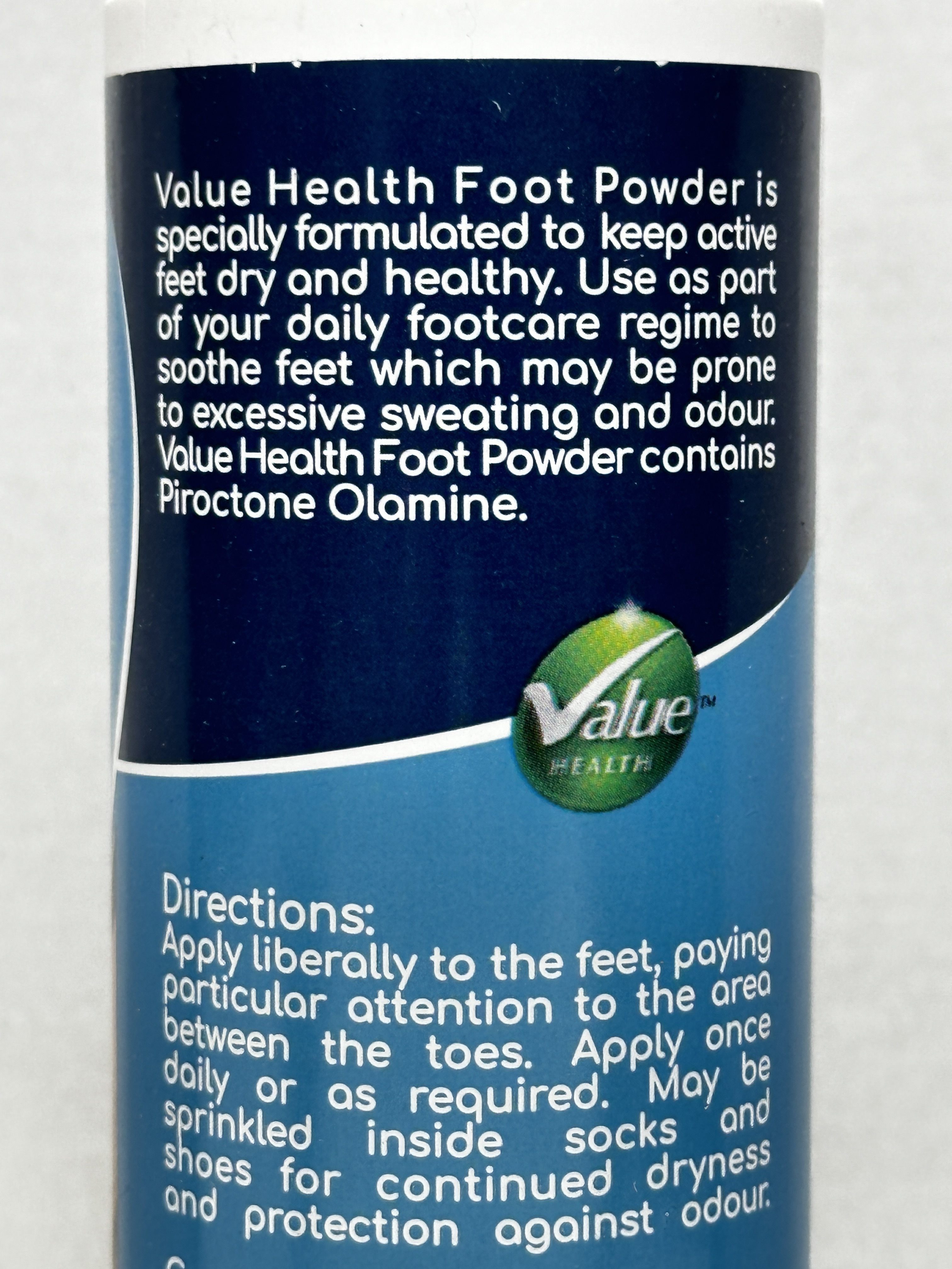 This powder contains piroctone olamine and is intended for use on the feet, including between the toes. The directions also state it may be sprinkled inside socks and shoes for continued dryness and protection against odour.