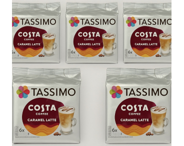 Tassimo Costa Caramel Latte Coffee Pods – 5 Packs (30 Drinks) | Creamy Caramel Flavour | Compatible with Tassimo Machines
