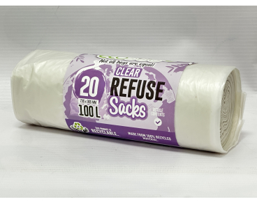 EcoBag Clear Refuse Sacks 100L 20 Pack 22 Micron Recycled Bin Bags