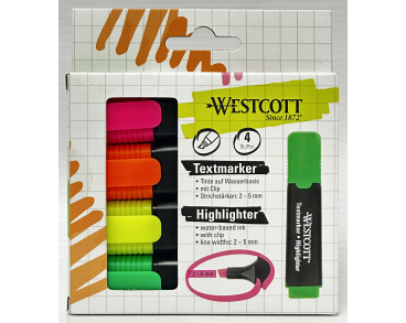 Westcott Highlighter Markers 4 Pack Green Yellow Orange Pink