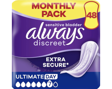 Always Discreet Incontinence Pads Ultimate Day 48 Pads Extra Secure Absorbency 7