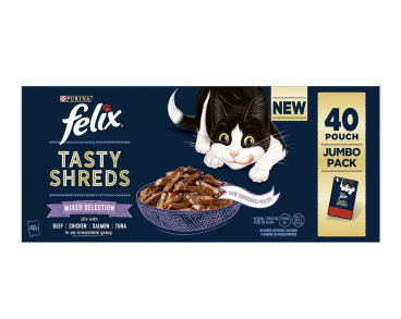 FELIX Tasty Shreds Mixed Selection in Gravy Wet Cat Food 40 X 80g Pouches