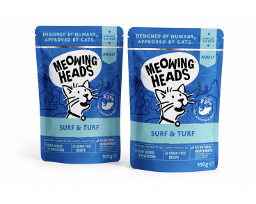 Meowing Heads Wet Cat Food Surf & Turf 93% Natural Fish Chicken & Beef 2 X 100g Pouches