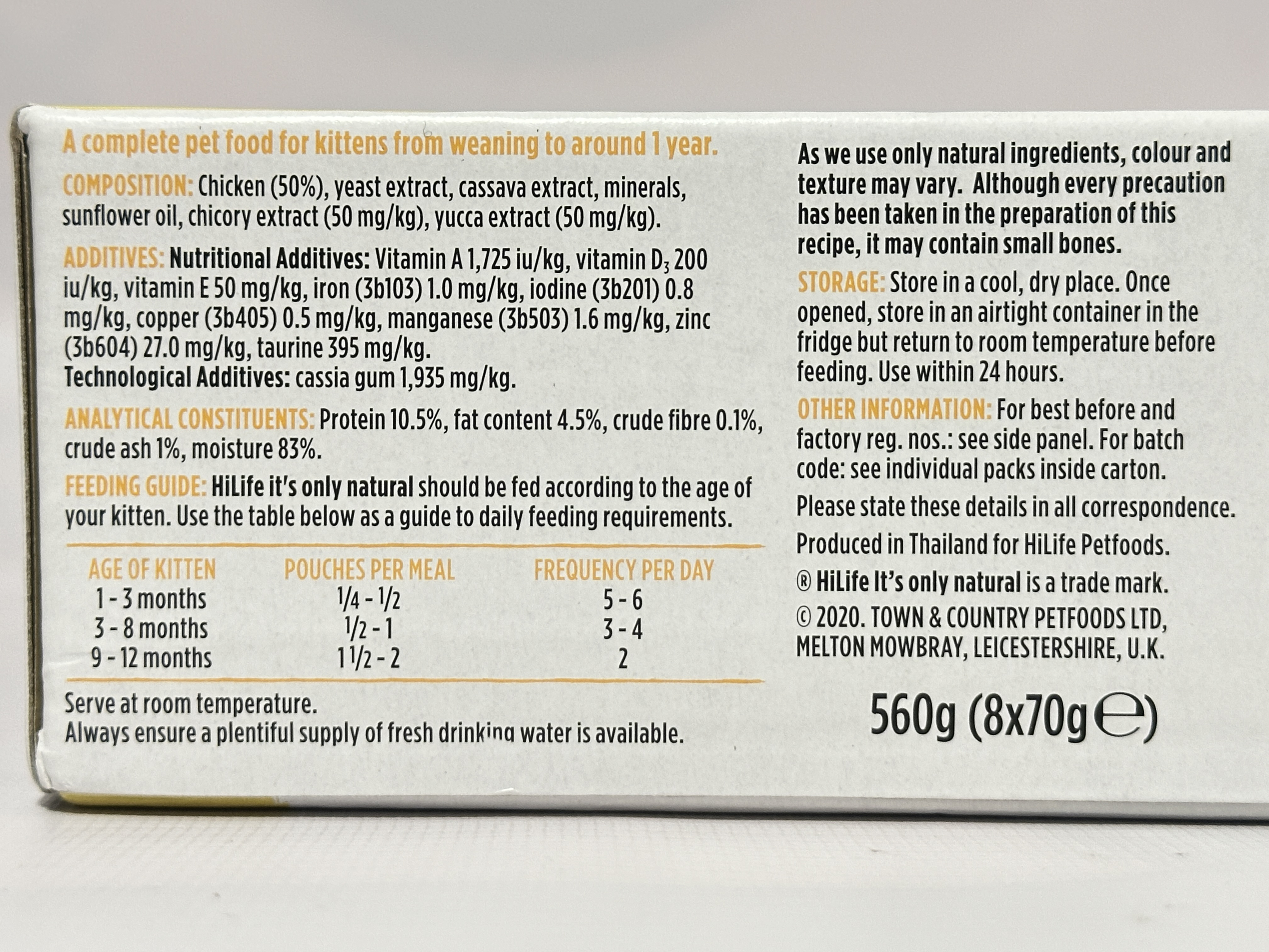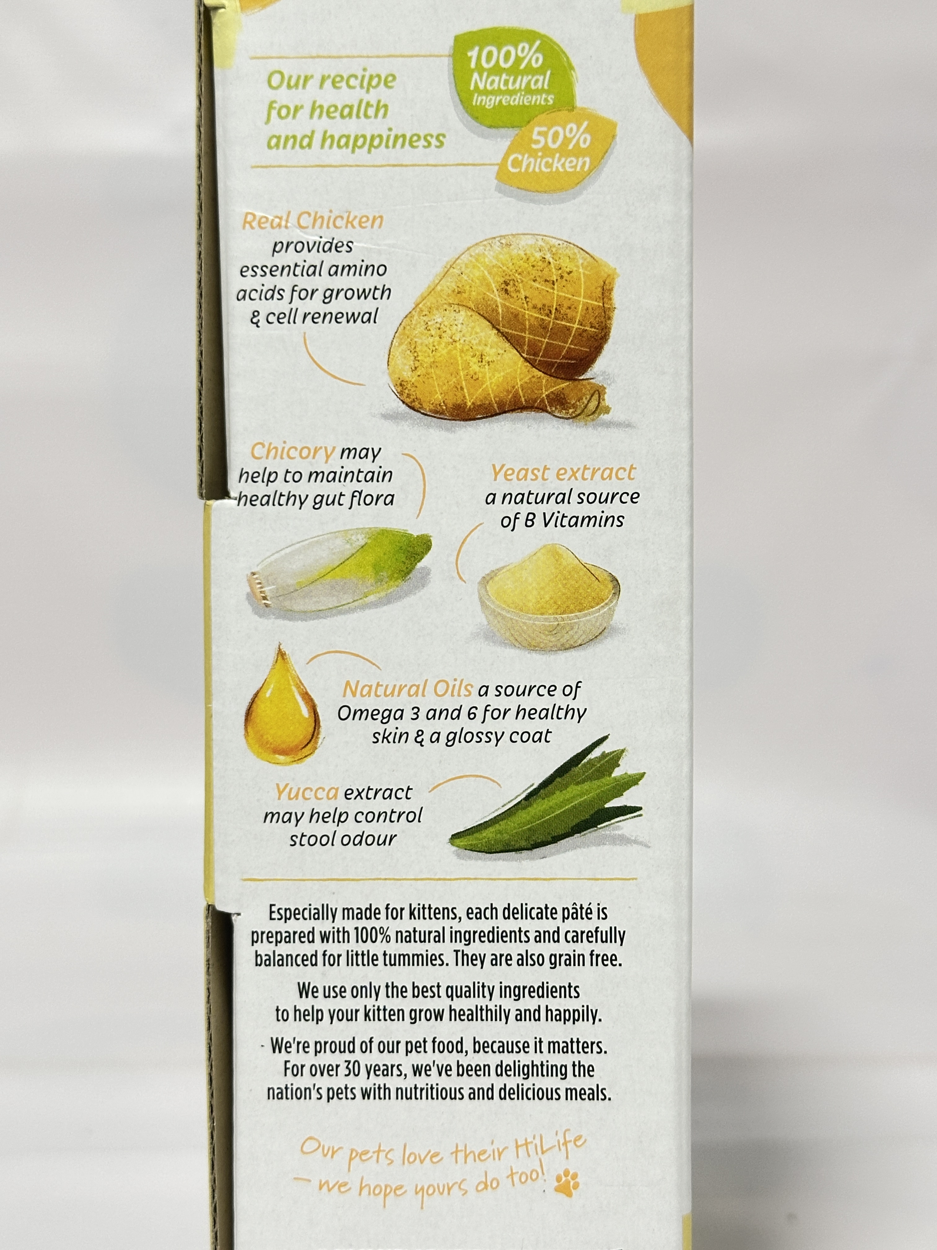 HiLife It’s Only Natural Kitten Wet Food – Tender Chicken Pâté | 32 x 70g (4 Packs of 8)