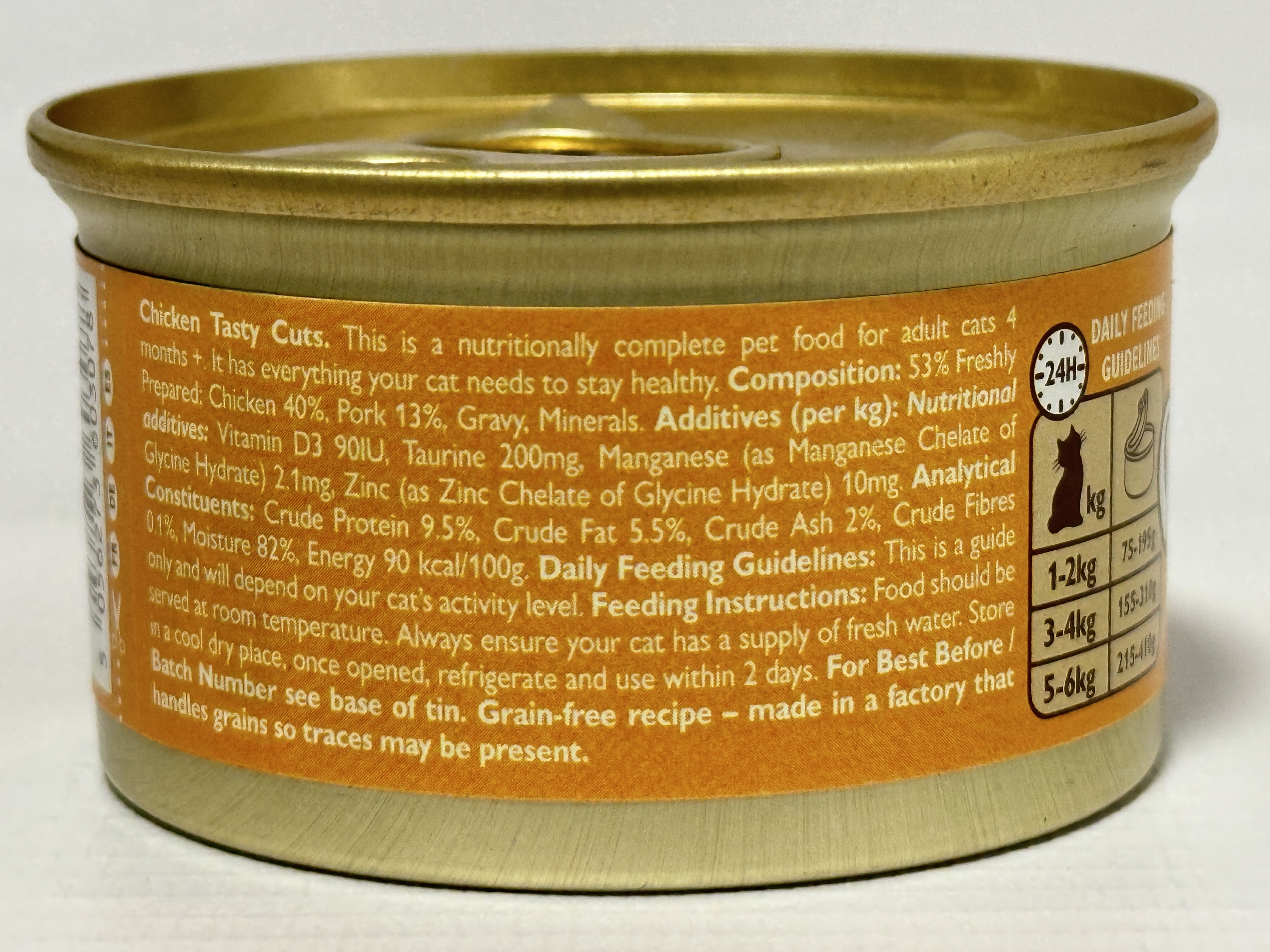 Grain-free, no added sugar, no artificial flavourings or fillers. Suitable for adult cats aged 4+ months.