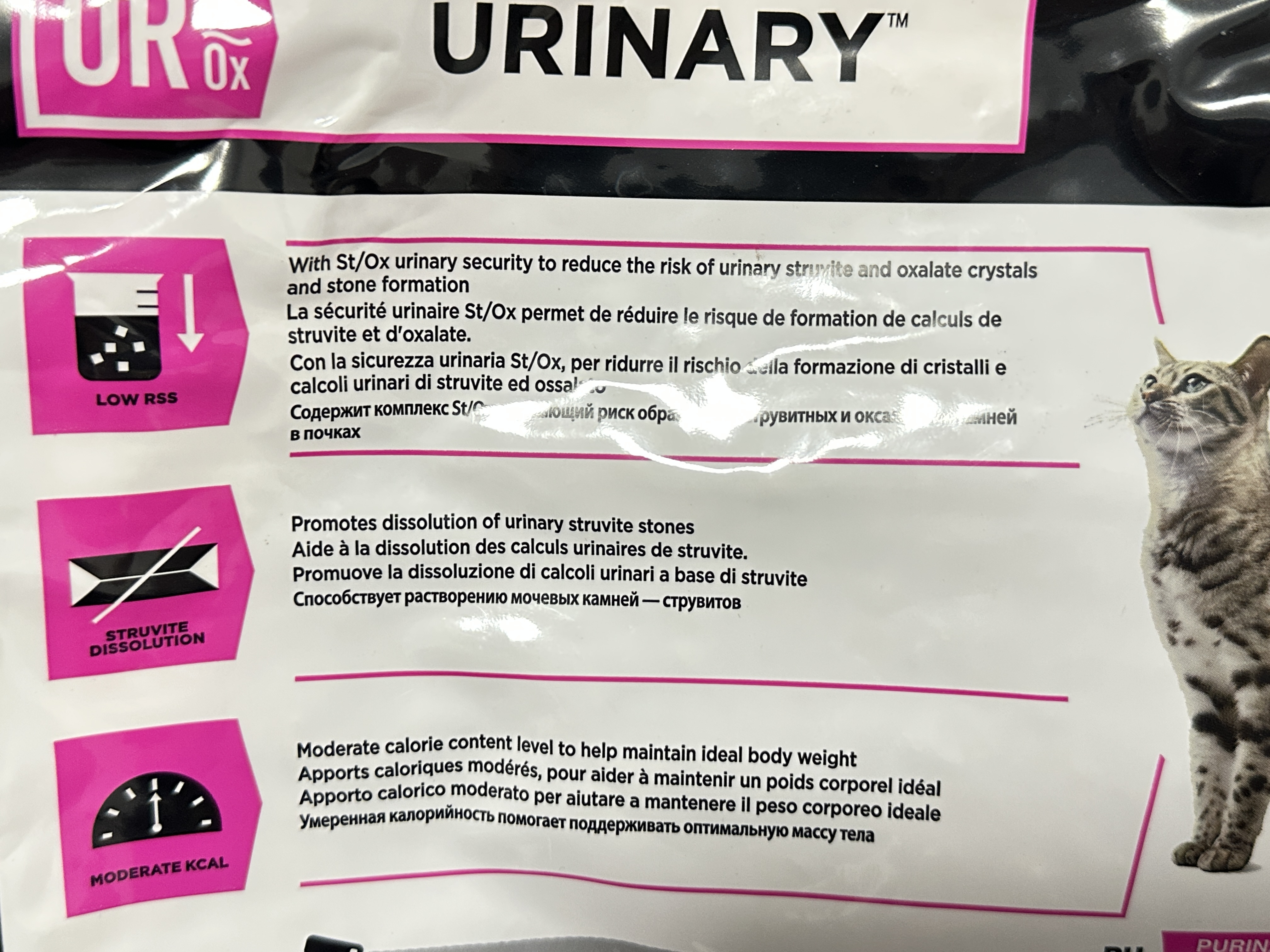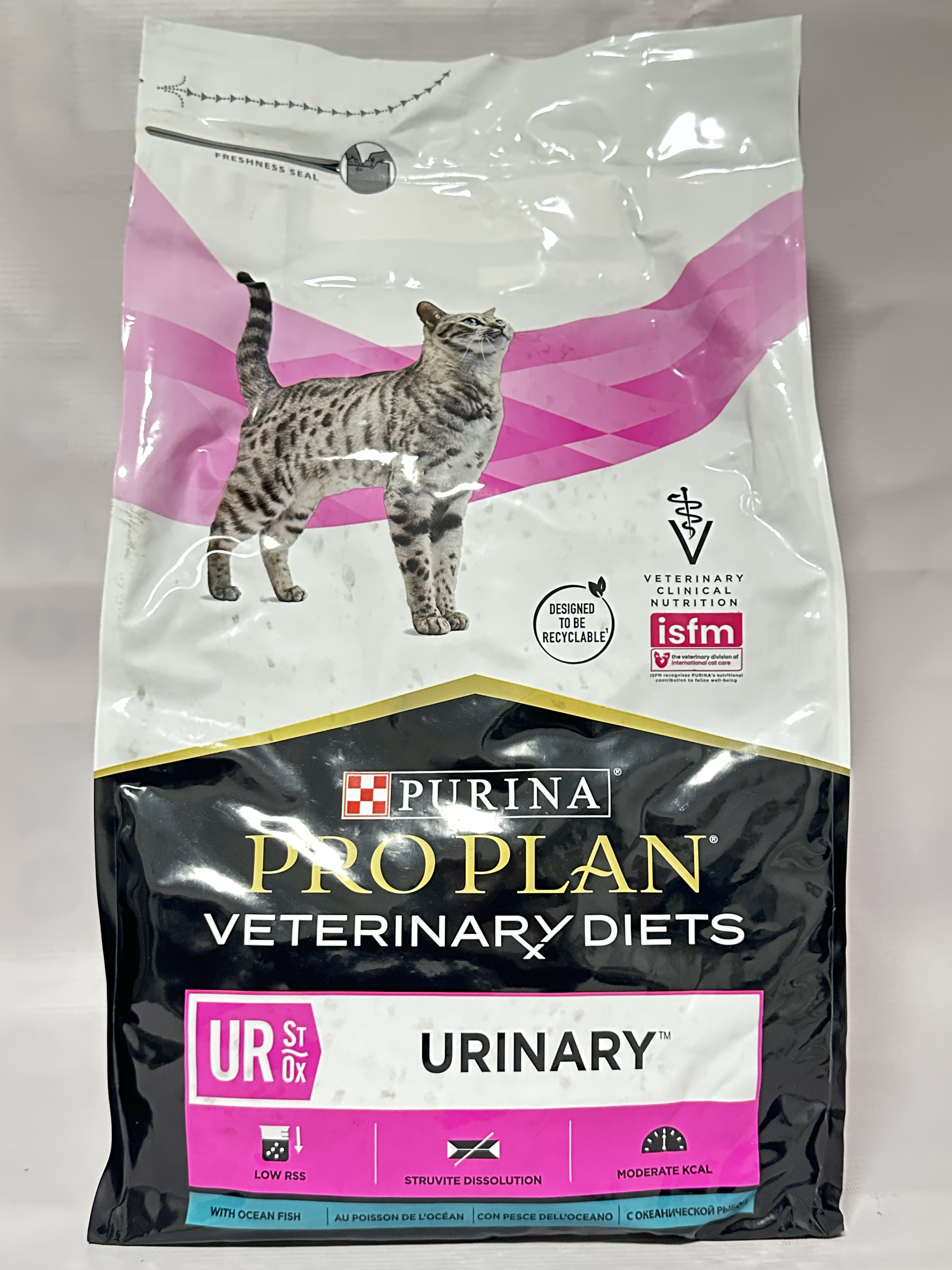 Purina Pro Plan Veterinary Diets UR St/Ox Urinary with Ocean Fish is a complete dietetic dry food formulated to support adult cats suffering from urinary tract conditions. It helps dissolve urinary struvite stones, reduce recurrence, and maintain urinary tract health through balanced nutrition and targeted minerals.