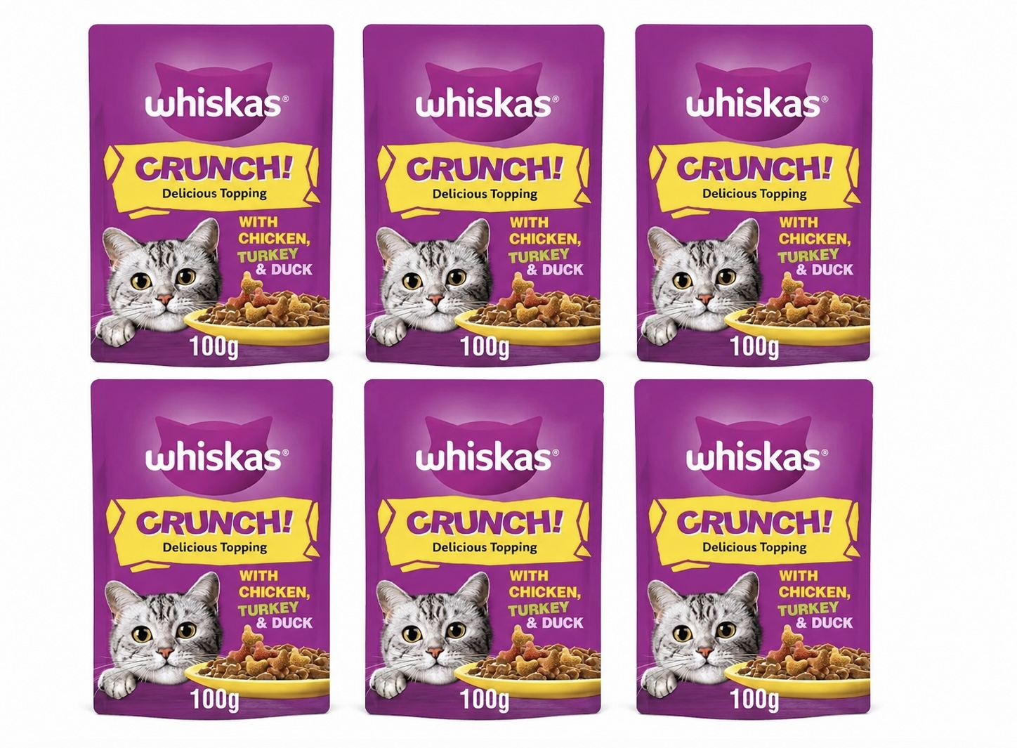 Whiskas Crunch Cat Treats 100g Delicious Crunchy Snacks for Cats (Pack of 6)