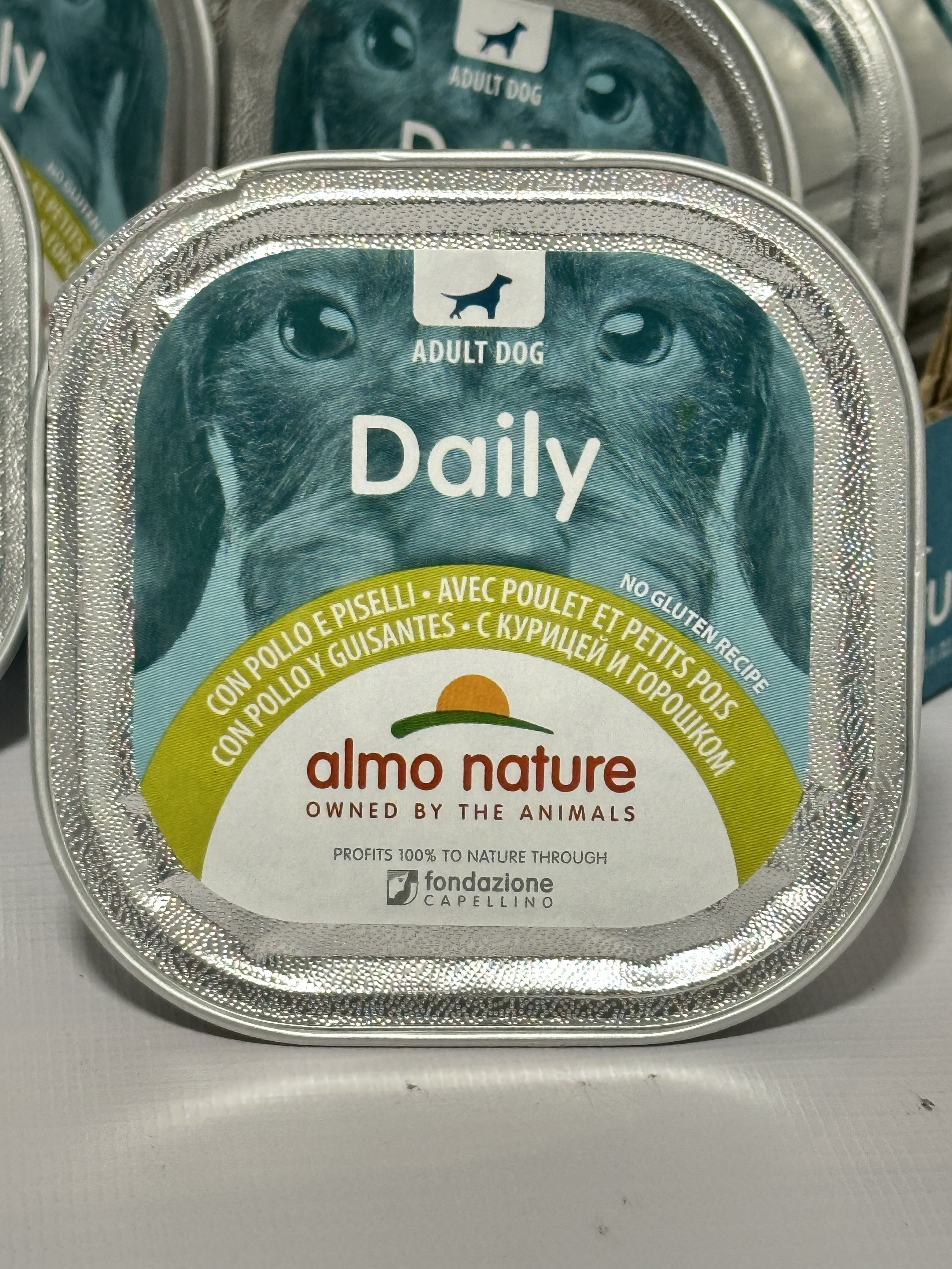 Give your dog a wholesome, grain-free meal with Almo Nature Daily Menu Dog Pâté with Chicken & Peas. Made with natural ingredients and formulated as a complete food for adult dogs, this recipe combines tender chicken (4%) with peas (4%) in a soft, tasty pâté. Fortified with essential vitamins and minerals, it helps maintain everyday wellbeing while supporting a balanced diet.