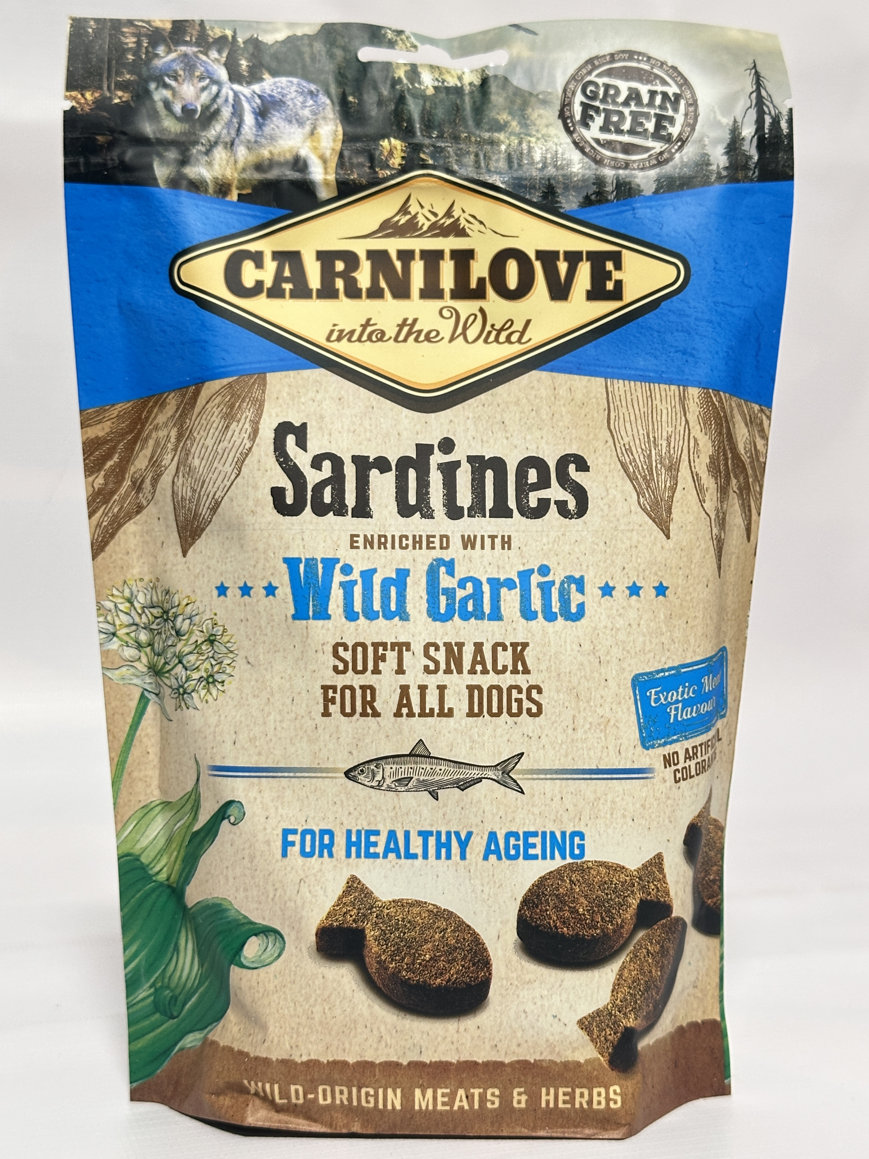 Carnilove Sardines with Wild Garlic Dog Treats – Grain Free Soft Snack for Dogs, Healthy Ageing Support, 200g