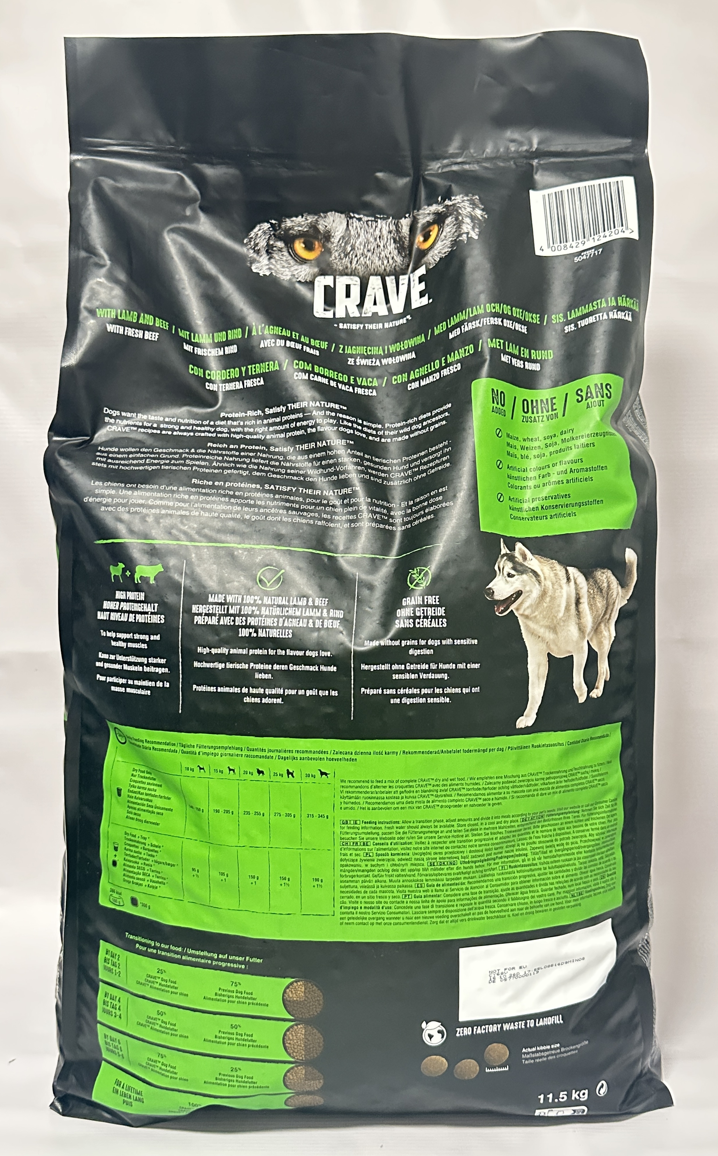 Fuel your dog with Crave Lamb & Beef Adult Dry Dog Food – a premium recipe inspired by a dog’s natural diet. Made with 29% natural beef (including 17.5% fresh beef), plus turkey, lamb and poultry proteins, this grain-free blend delivers 36% protein to support lean muscle and vitality. Each serving is packed with high-quality animal proteins, peas, and essential nutrients, without wheat, maize or dairy.