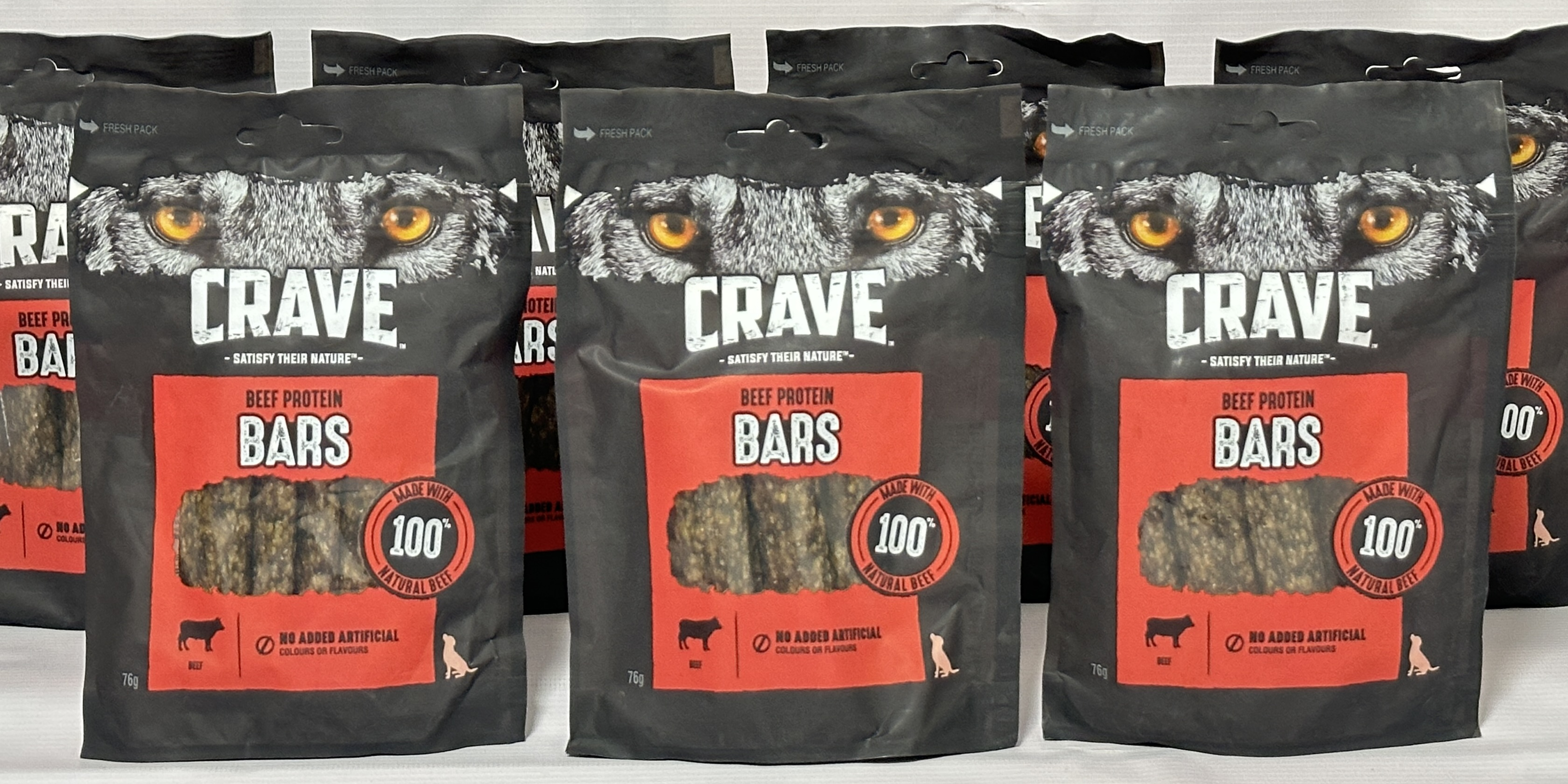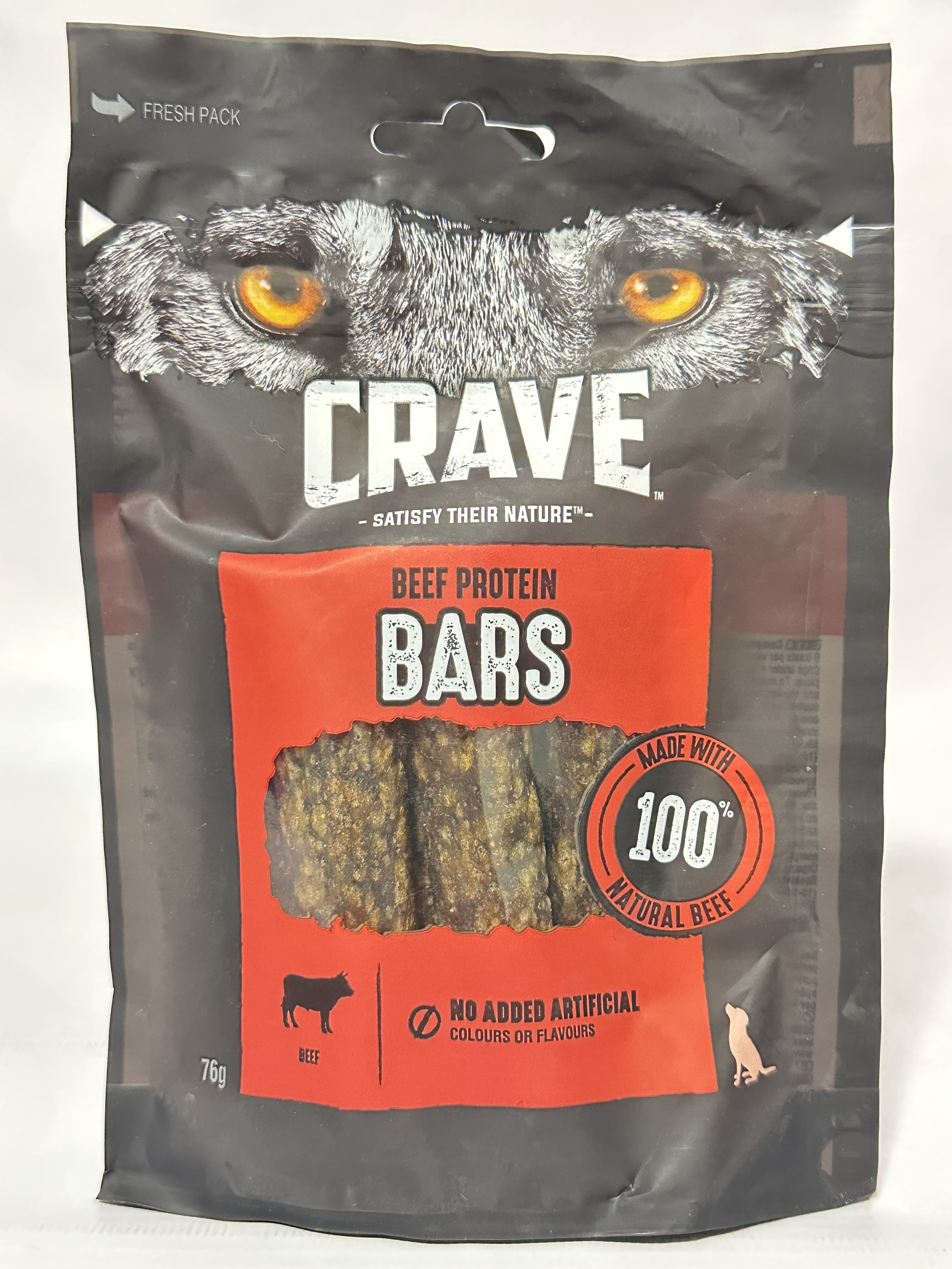 Give your dog the protein-packed reward they crave with Crave Protein Bars in rich beef flavour. This bulk pack includes 7 x 76g individually sealed bars, each made with quality animal protein and inspired by your dog’s natural diet.
