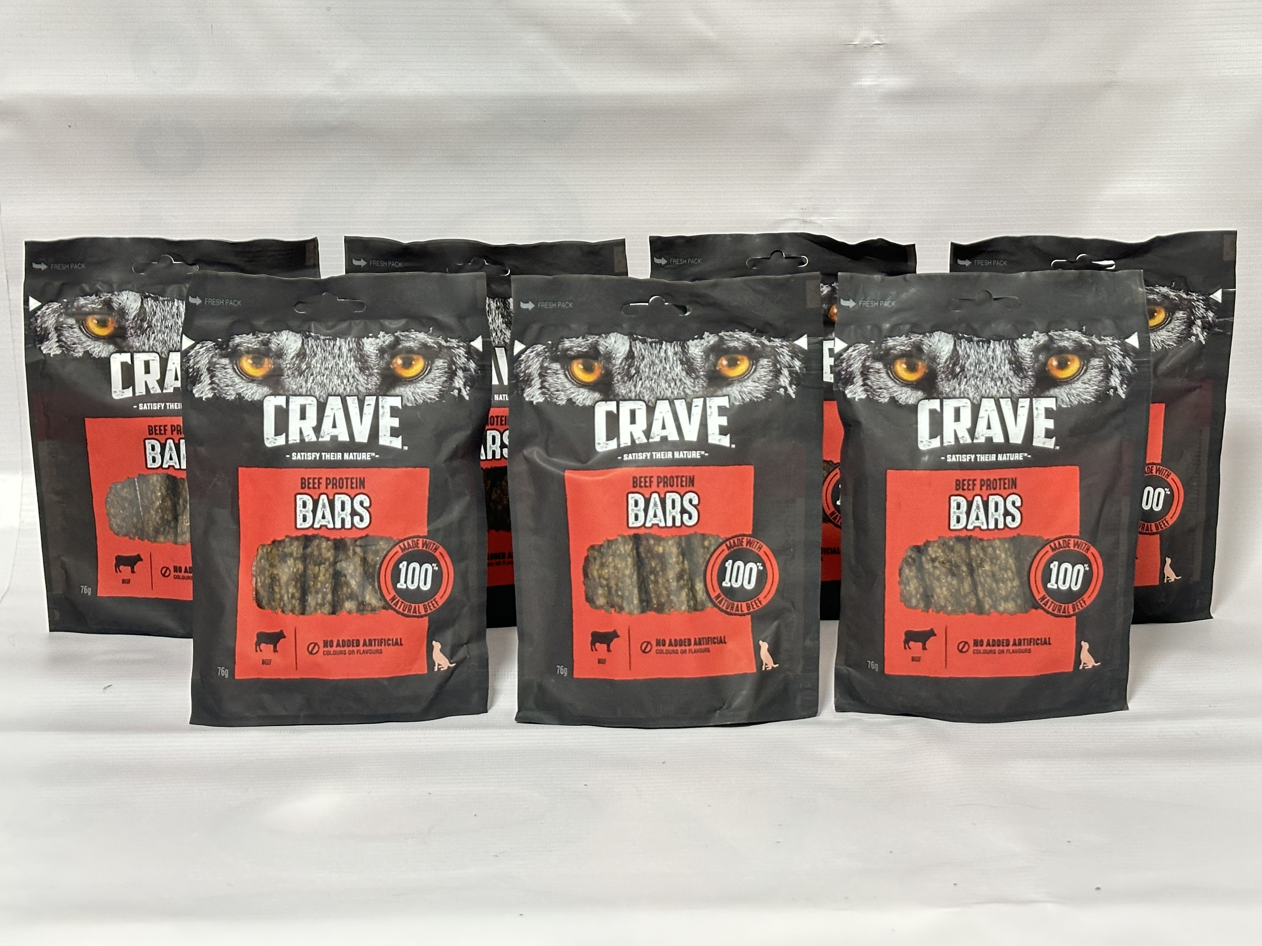 • Pack of 7 x 76g Crave Protein Bars – Beef Flavour