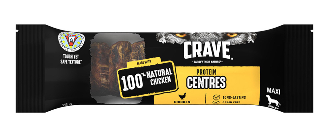 Perfect as an occupier treat or reward, Crave Protein Centres Maxi are ideal for keeping your dog entertained, while promoting chewing behaviour that helps support dental health.