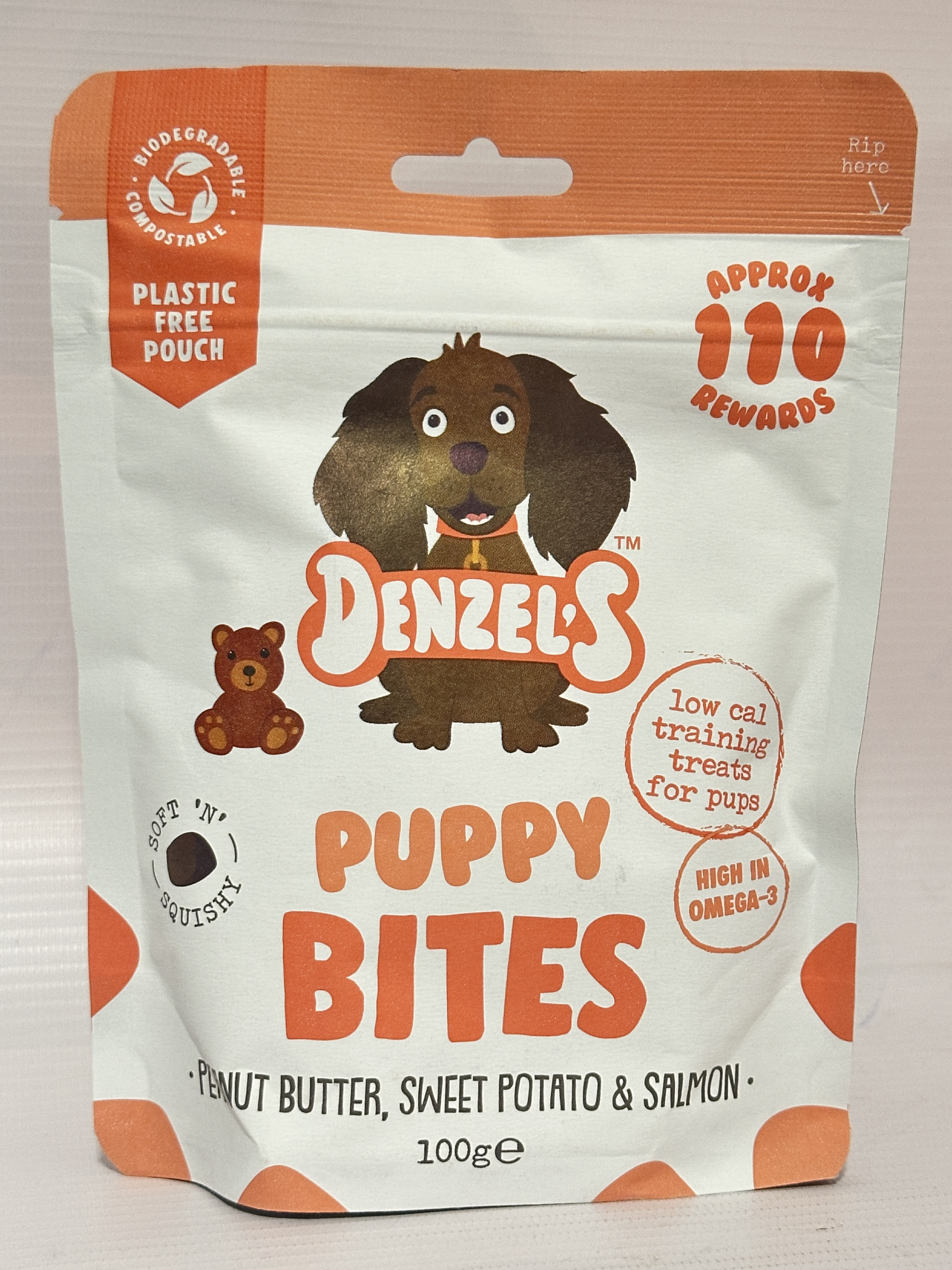 Denzel’s Puppy Bites – Salmon, Peanut Butter & Sweet Potato – 4 x 100g Training Treats