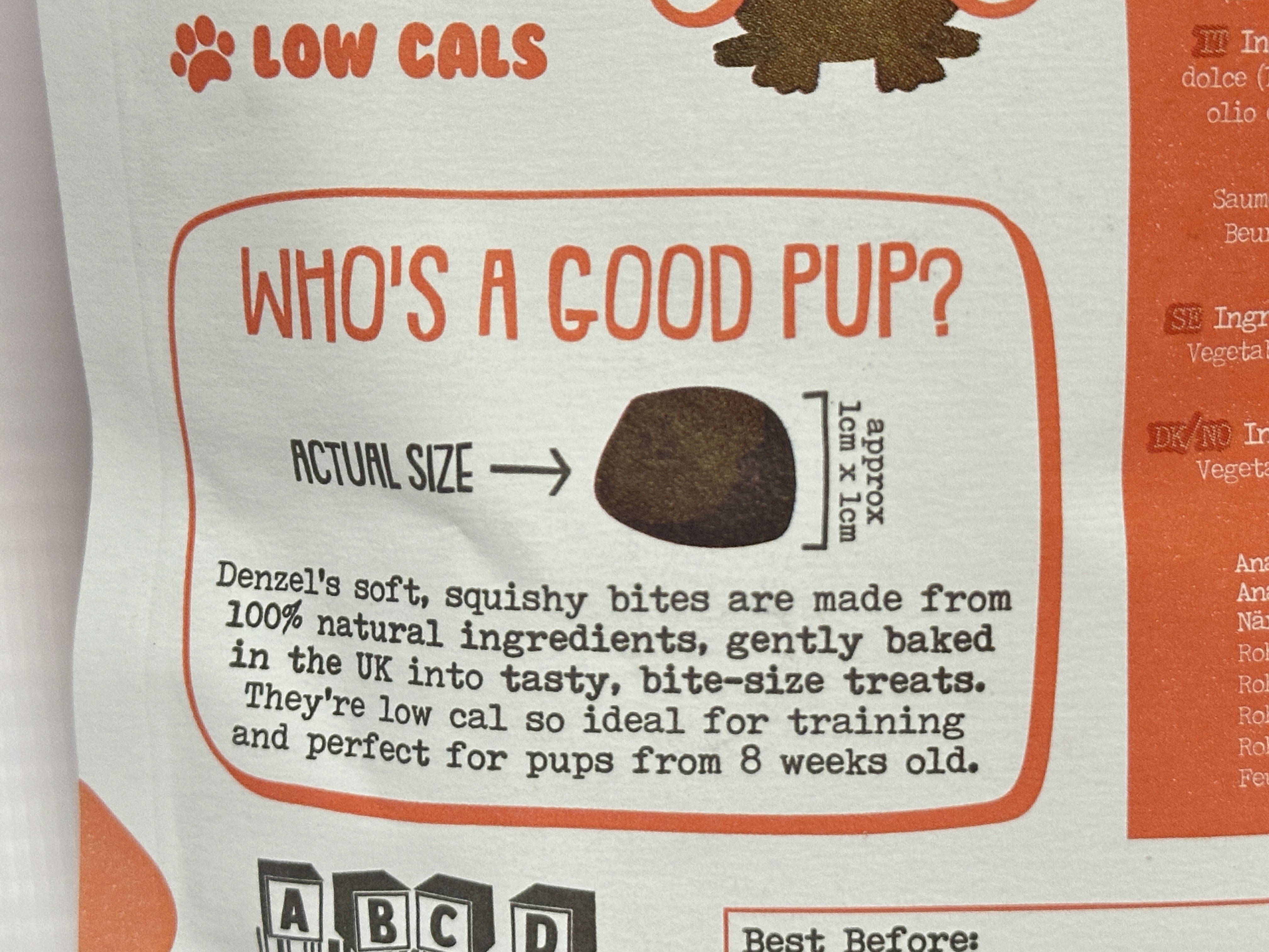 Usage: Suitable as a training reward for puppies from 8 weeks old. Feed as part of a balanced diet. Always provide fresh drinking water.