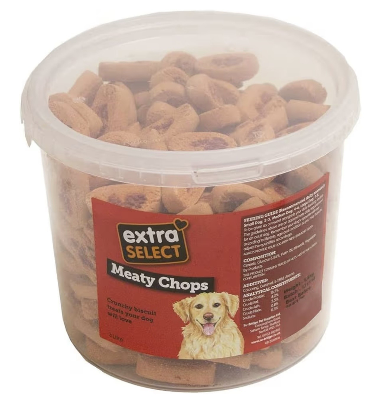 Extra Select Chop Shaped Dog Treat Biscuits in a 3ltr Bucket (approx 200 biscuits)