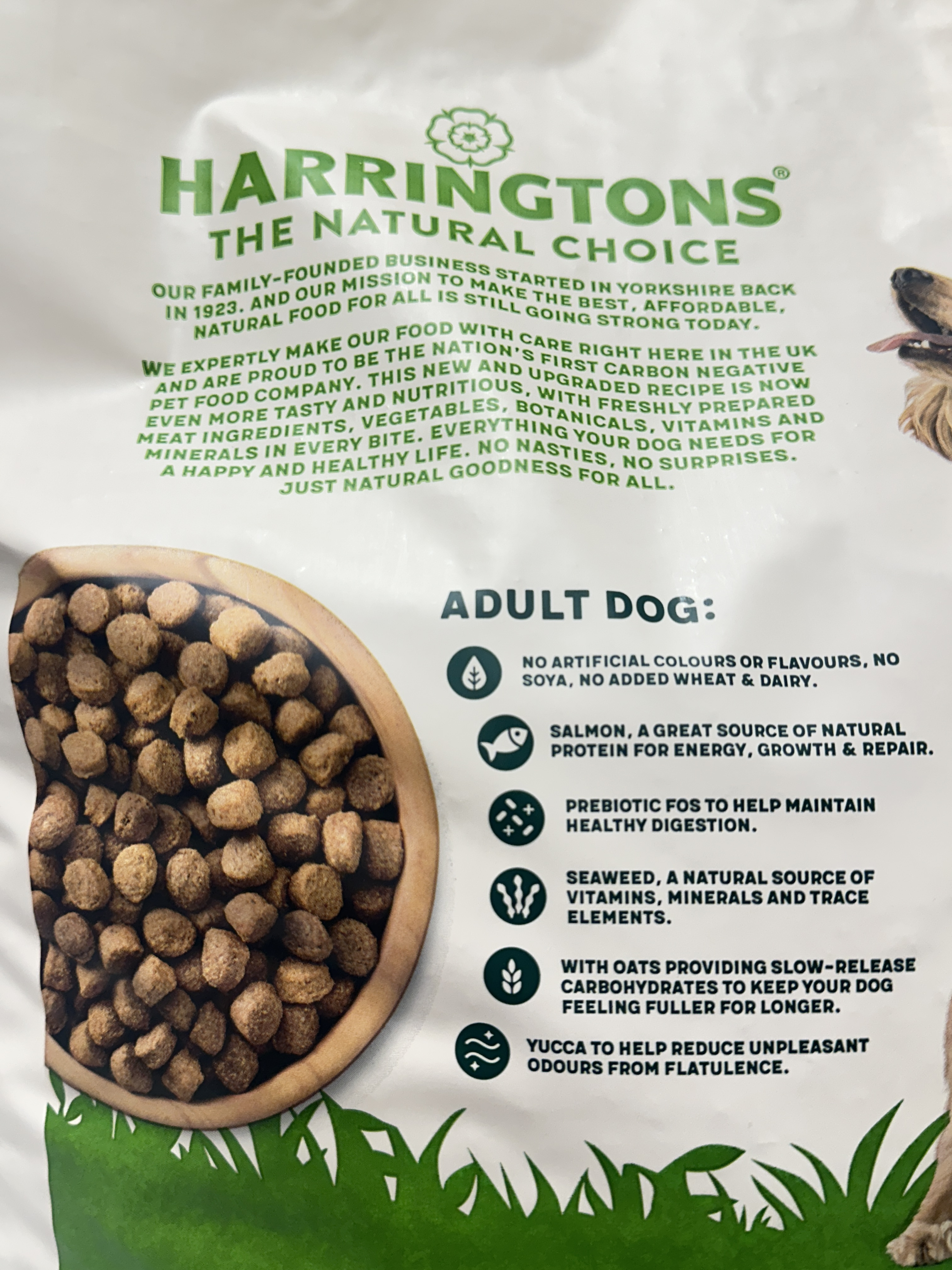 Harringtons Adult Complete Dry Dog Food with Salmon & Potato is a balanced dry kibble designed for adult dogs. Made in the UK, this recipe includes salmon as a key protein source and is blended with vegetables, botanicals, vitamins and minerals to support everyday nutrition.