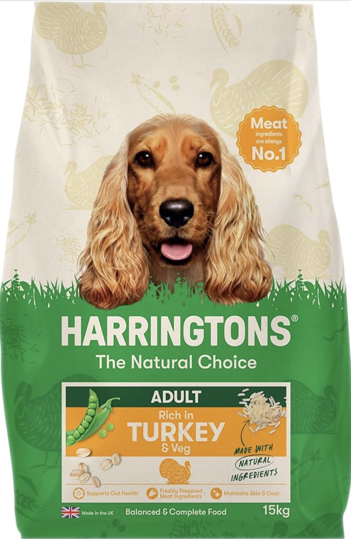 Harringtons Adult Complete Dry Dog Food with Turkey & Veg is a balanced kibble designed for everyday feeding of adult dogs. Made in the UK, this recipe includes turkey as a key protein source combined with vegetables, oats and added vitamins and minerals to support daily nutrition.