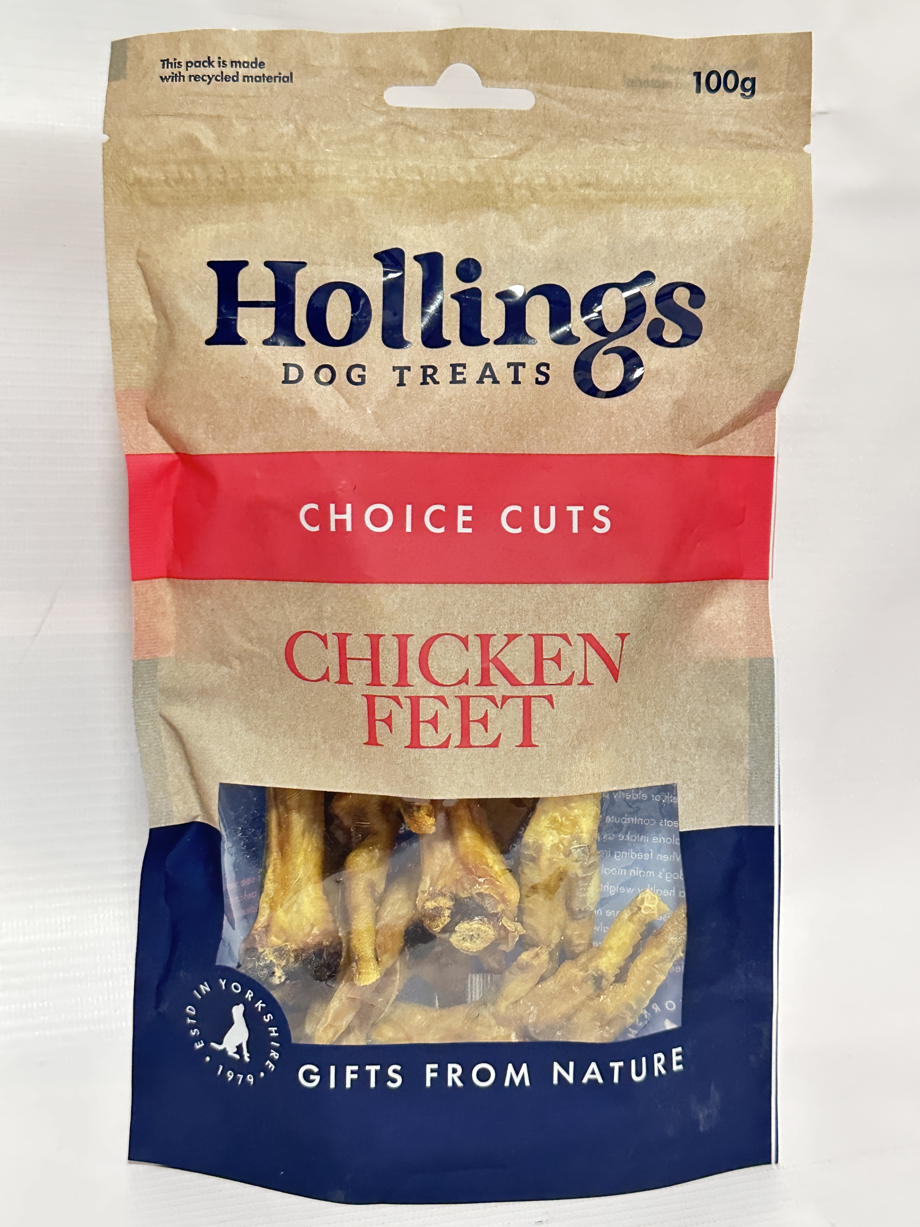 Hollings Chicken Feet Dog Treats – 100g | 100% Natural, High Protein, Grain Free Crunchy Treats for Adult Dogs