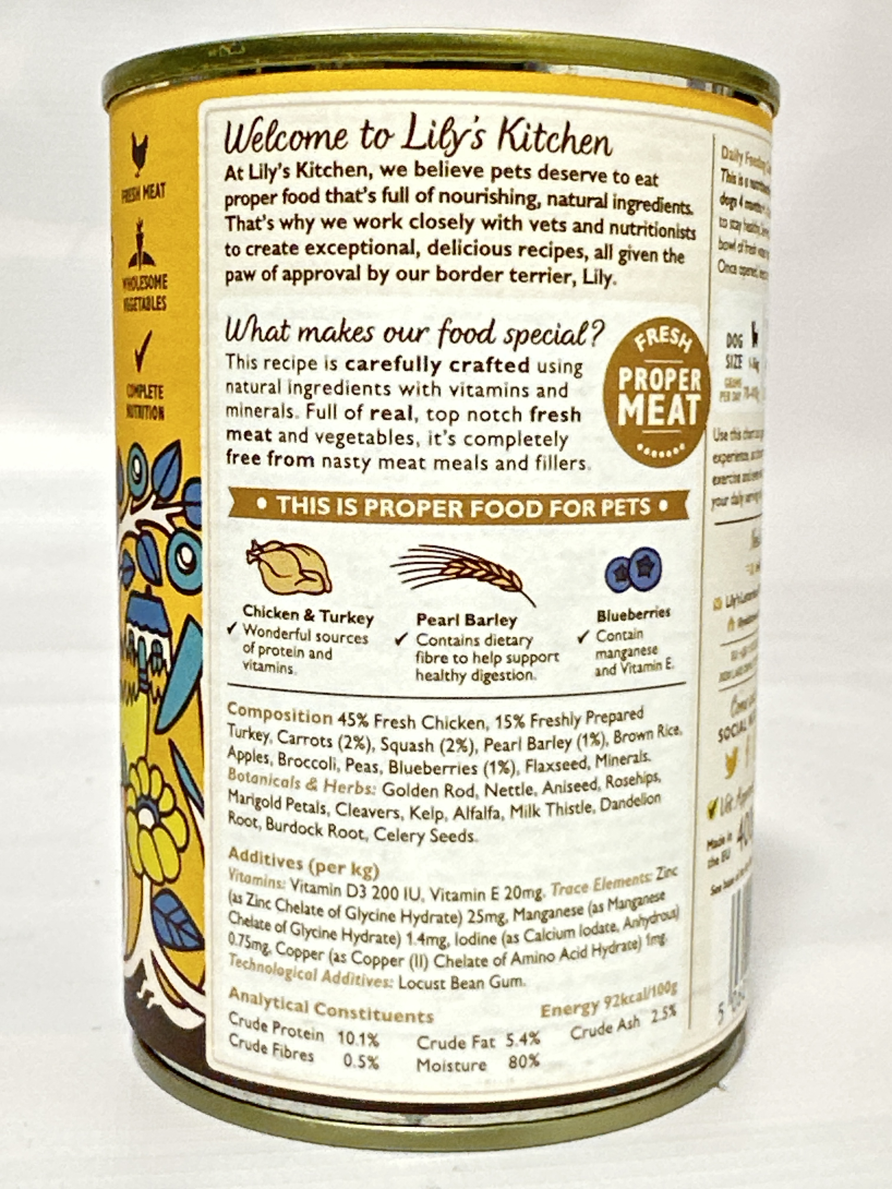 Lily’s Kitchen Wet Dog Food – Chicken & Turkey Casserole – 24 × 400g Tins – Natural, Grain Free, Complete Adult Meal