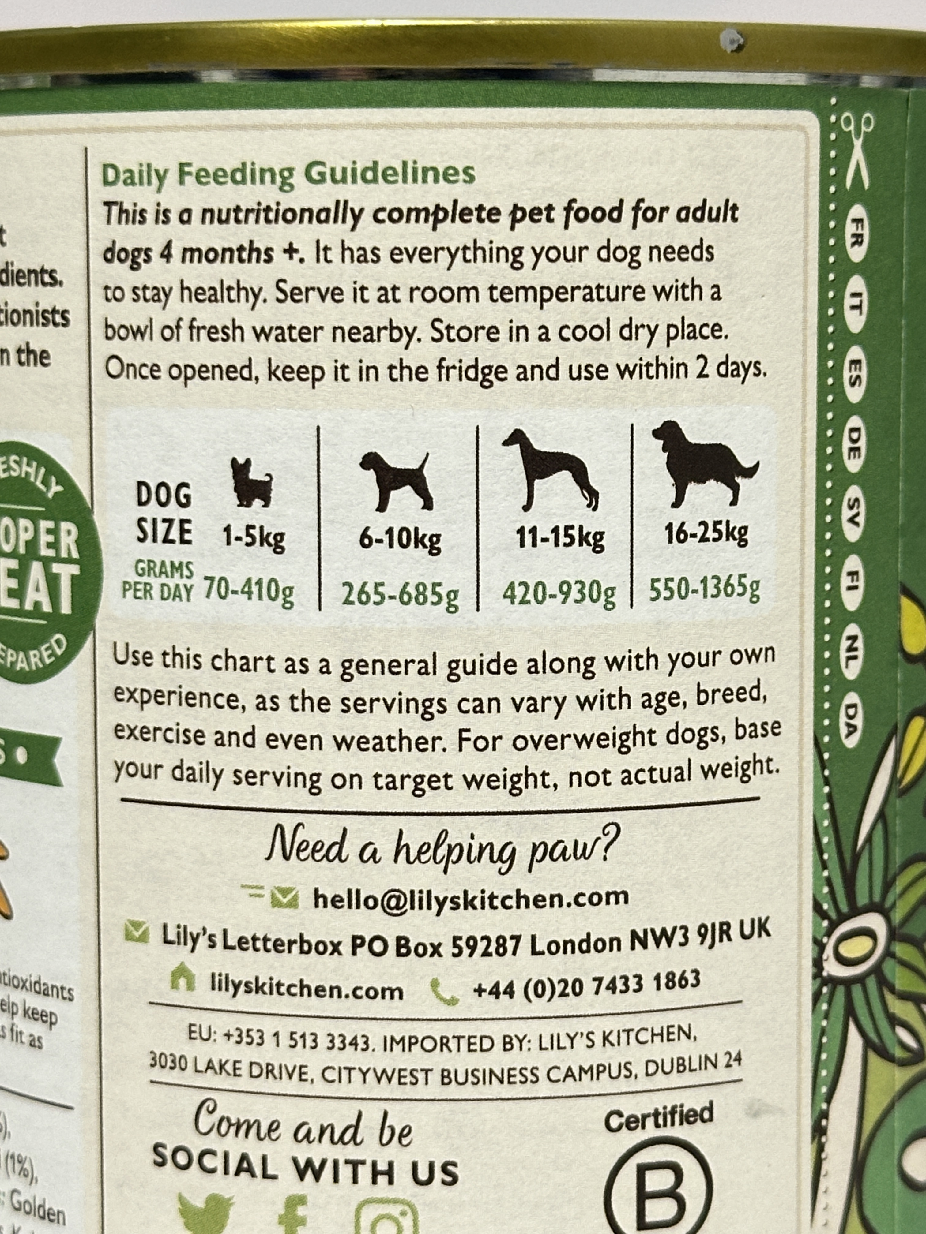 Give your dog the natural nourishment they deserve — in bulk value format. This 24-pack (6 x 4 tins) of Lily’s Kitchen Lamb Hotpot provides a complete, balanced diet made from 60% freshly prepared lamb, wholesome vegetables, and herbs. Ideal for adult dogs aged 4 months and over, it’s a delicious grain-free recipe that supports digestion, immunity, and energy — all with no artificial additives, fillers, or nasties. Perfect for owners who want to stock up on quality nutrition at an unbeatable bulk price.